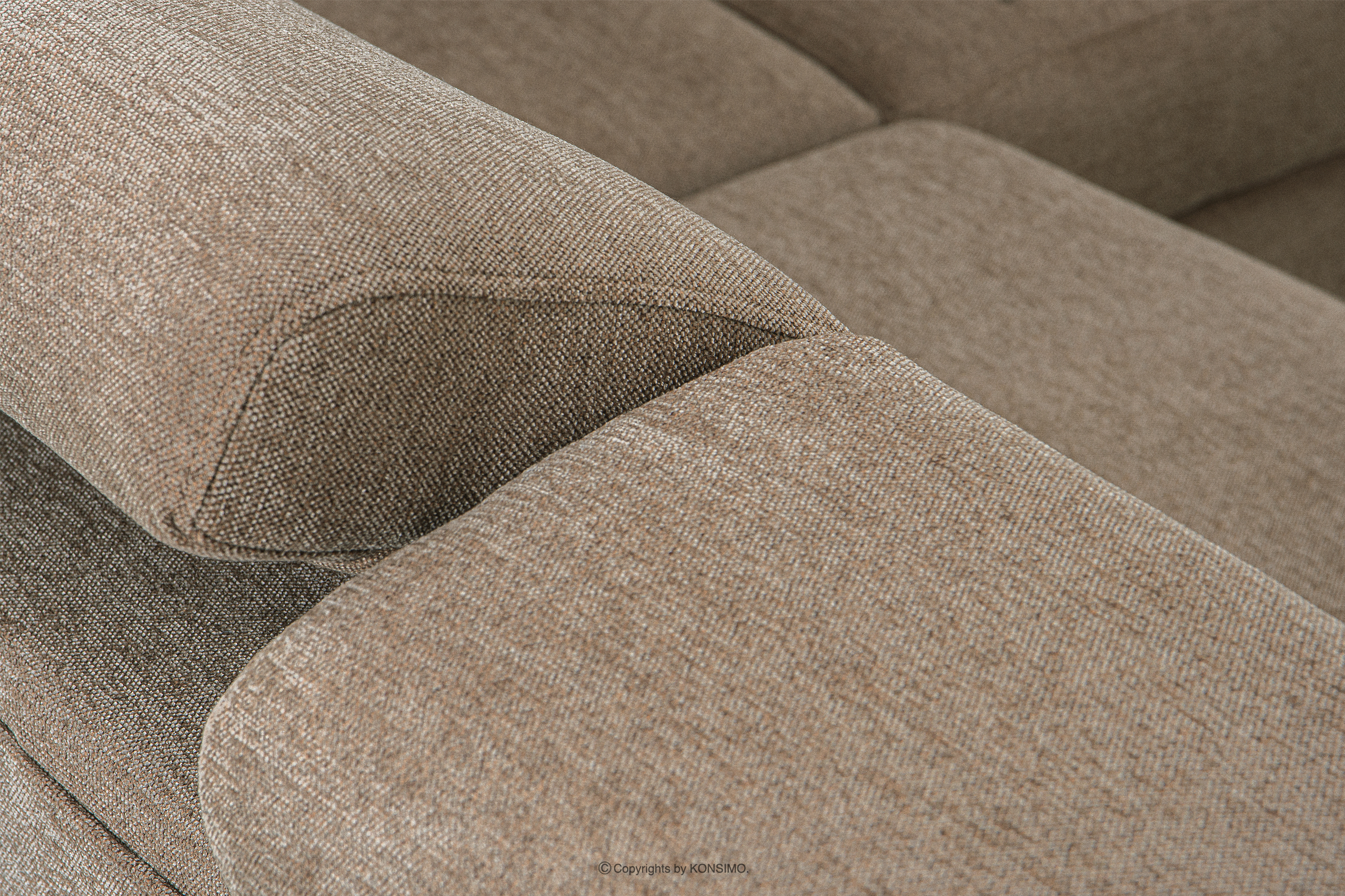 Odolná, ľahko udržiavateľná, rohová pohovka s funkciou spania a kontajnerom na lôžkoviny tmavo béžovej farby vľavo, vyrobená z pevných a odolných materiálov, z kolekcie moderného nábytku RATLO je návrhom pre náročných. Ľahko sa rozkladá a je vybavená veľkým boxom, je ideálna do malých bytov. Na dotyk príjemná tkaná látka je mimoriadne odolná voči oderu a poškodeniu.