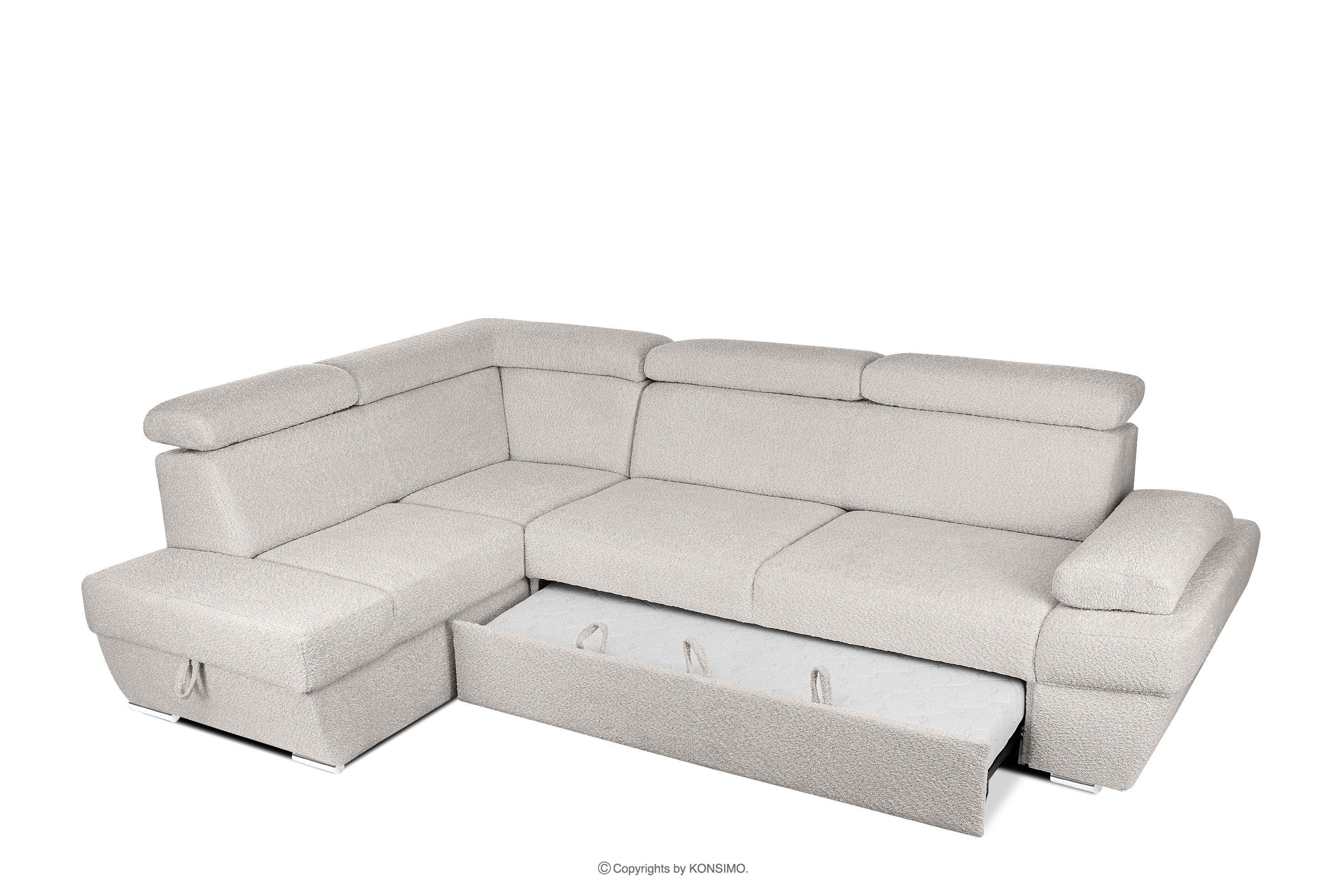 Odolná, ľahko čistiteľná, vyrobená z pevných a trvanlivých materiálov, rozkladacia rohová pohovka z ovčej kože s kontajnerom na lôžkoviny hneďá ľavá z kolekcie moderného nábytku RATLO je návrhom pre náročných. Ľahko sa rozkladá a je vybavená veľkou truhlicou, preto je ideálna do malých bytov. Na dotyk príjemná tkaná látka je mimoriadne odolná voči oderu a poškodeniu.