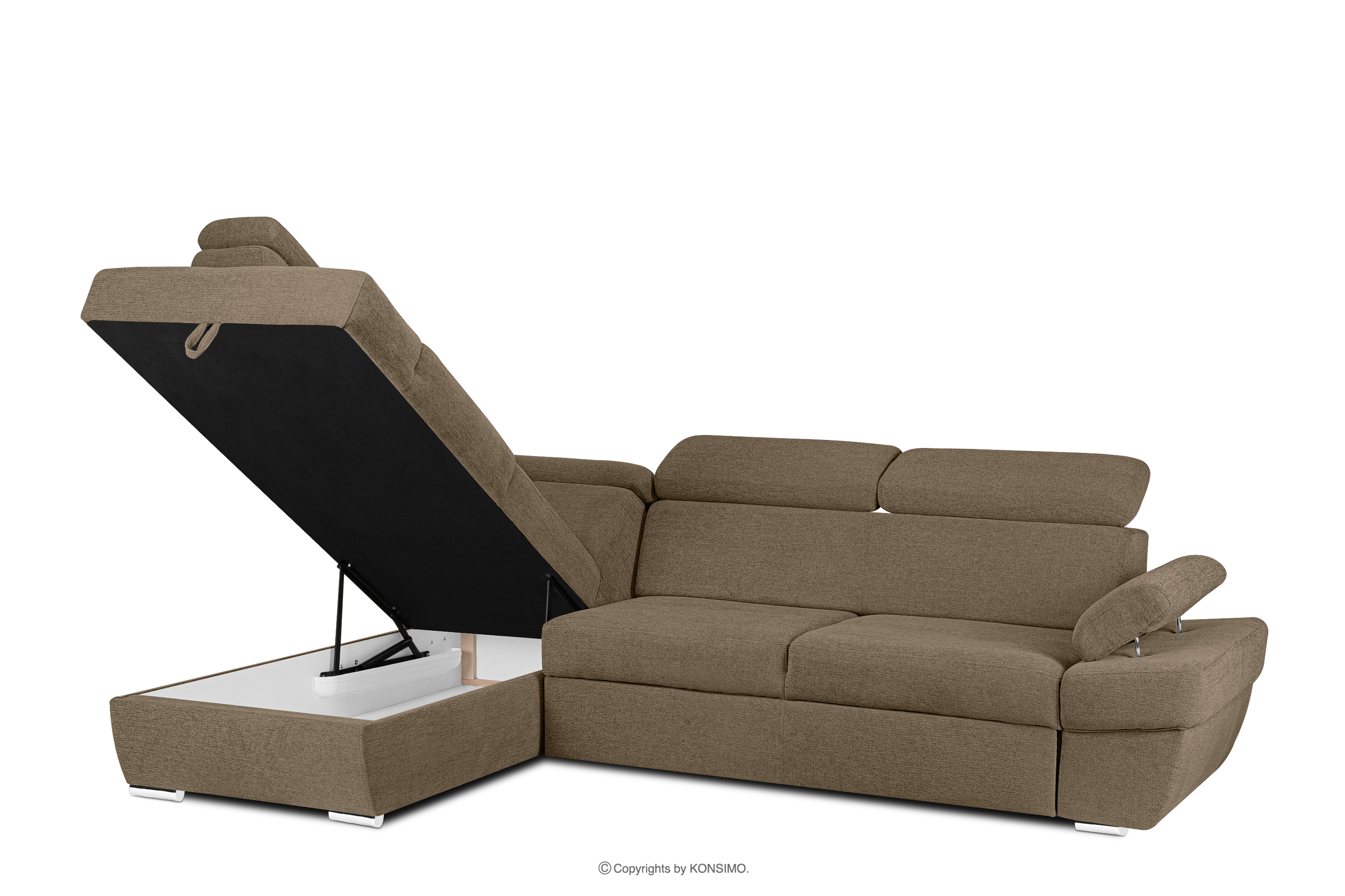 RATLO Rohová pohovka s funkciou spania a kontajnerom na lôžkoviny svetlohnedá vľavo