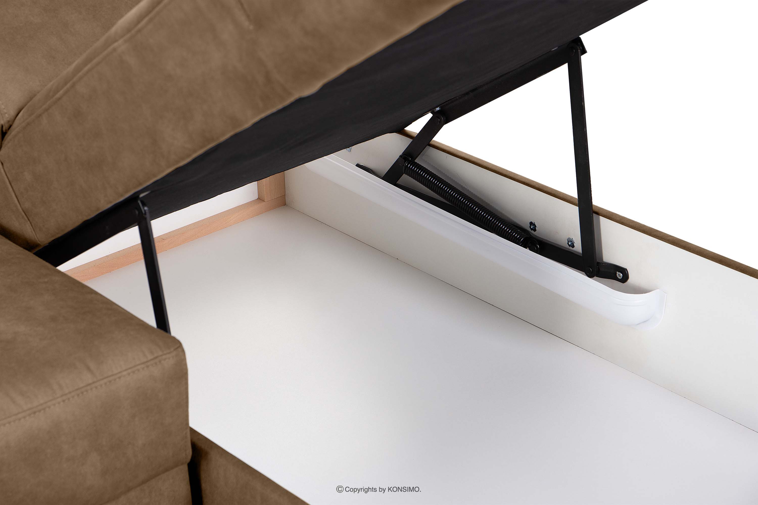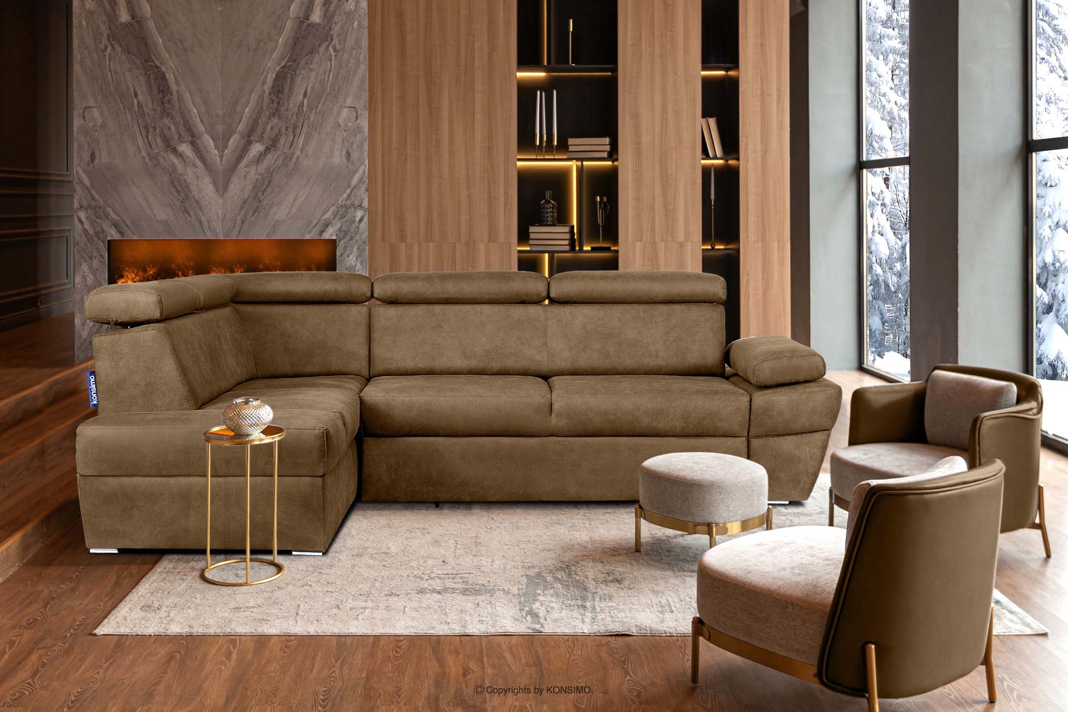RATLO Objav celú kolekciu Rohová pohovka s funkciou spania z látky podobnej koži cappuccino vľavo- farba cappuccino