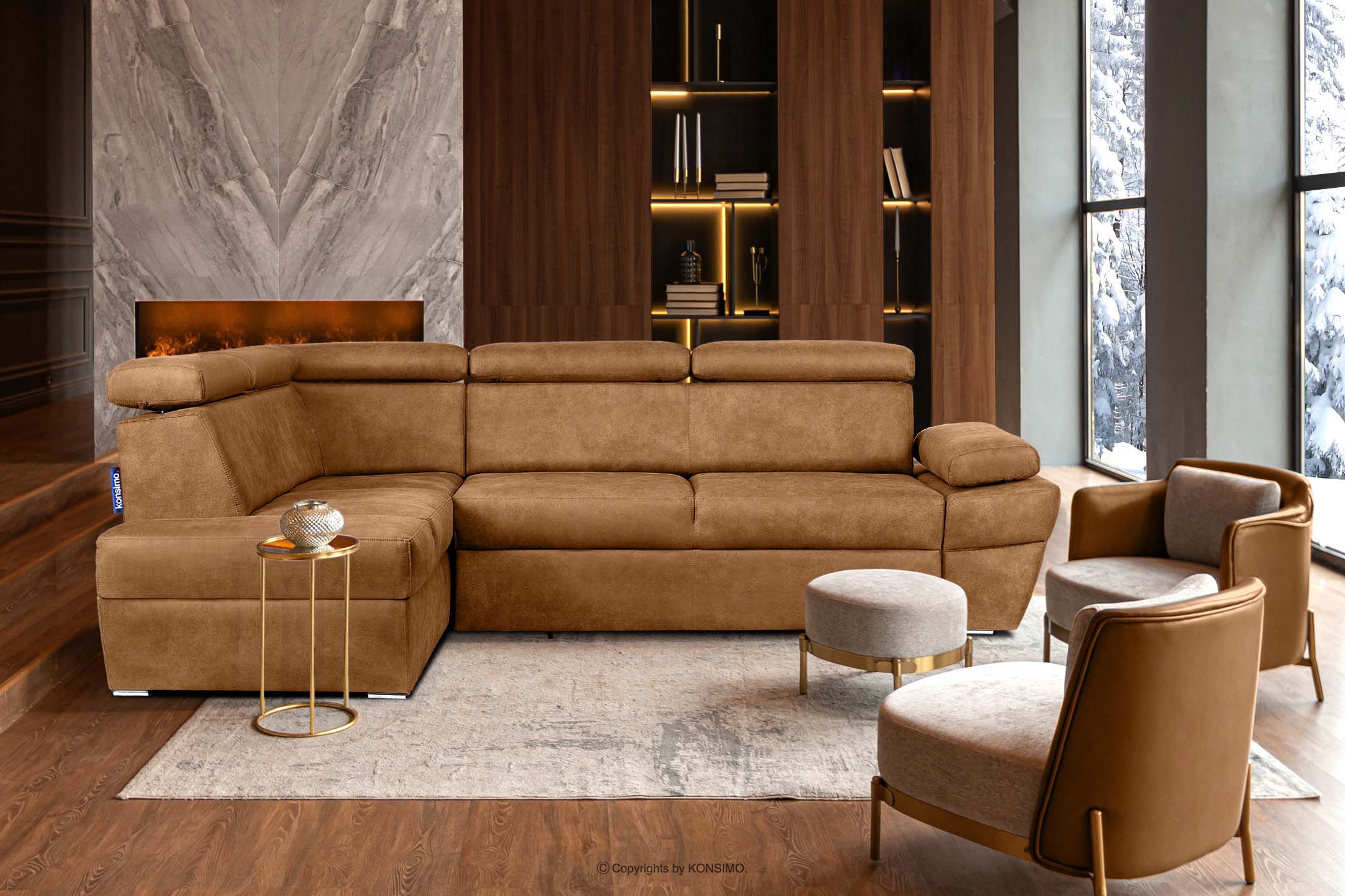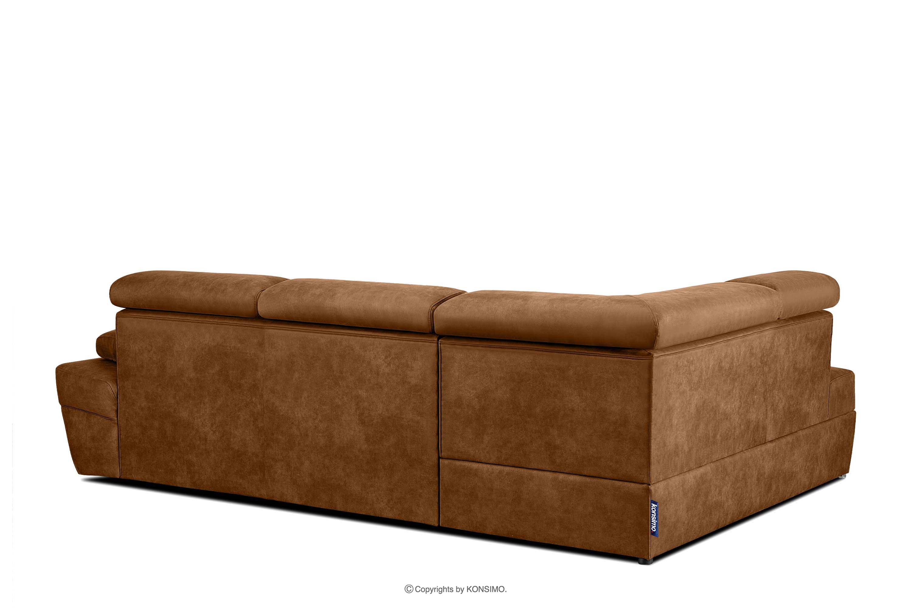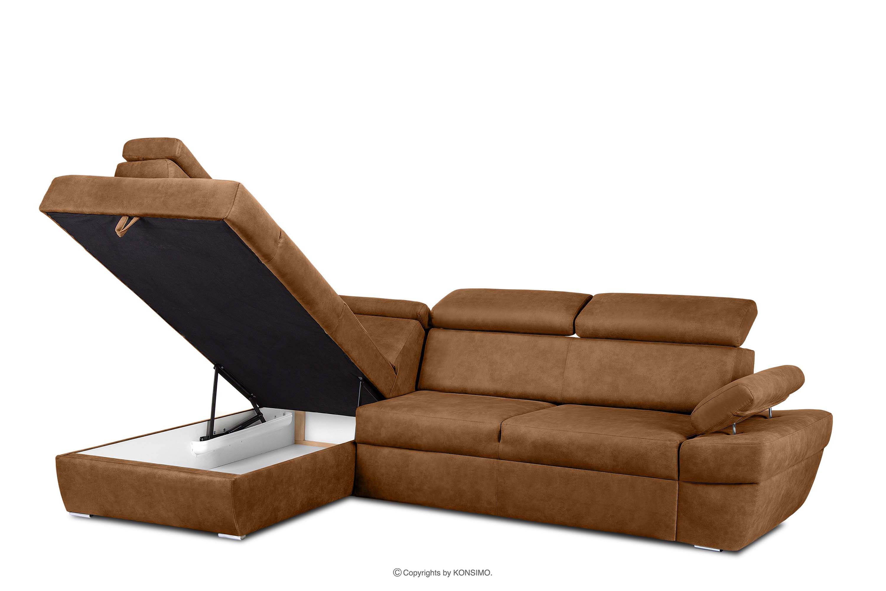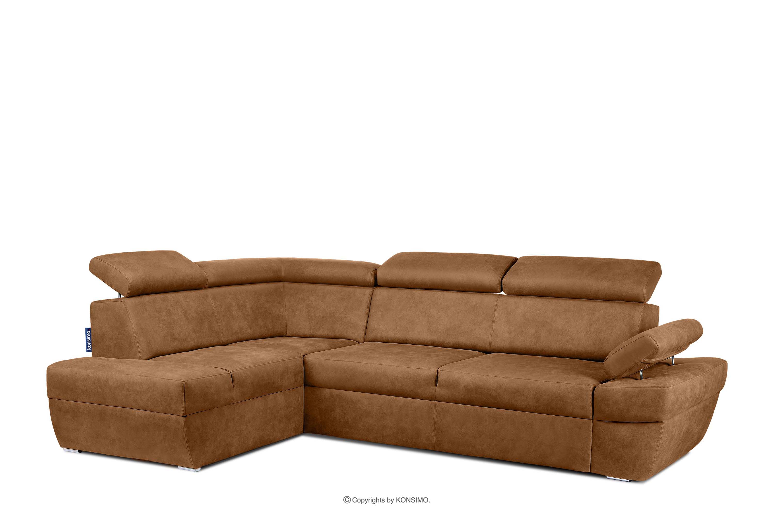 RATLO Objav celú kolekciu Rohová pohovka s funkciou spania z látky podobnej koži červená vľavo- farba ruda
