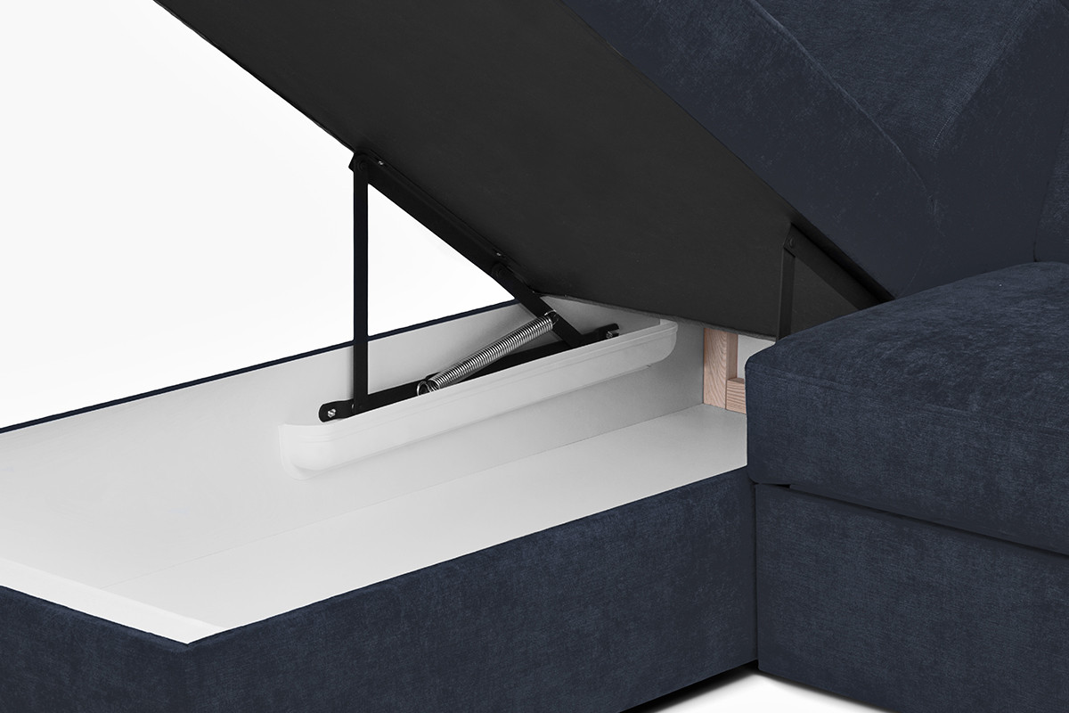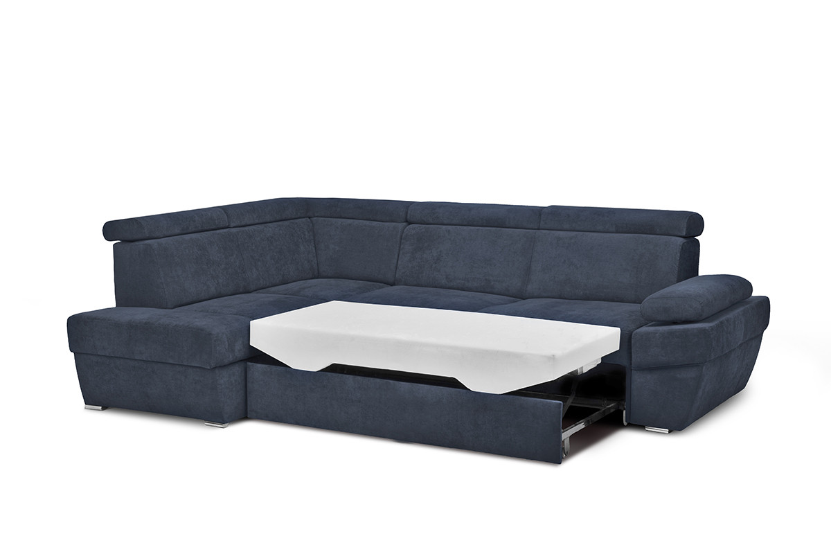 produktu Rozkladacia rohová pohovka do obývacej izby s úložným priestorom na lôžkoviny tmavo modrá ľavá