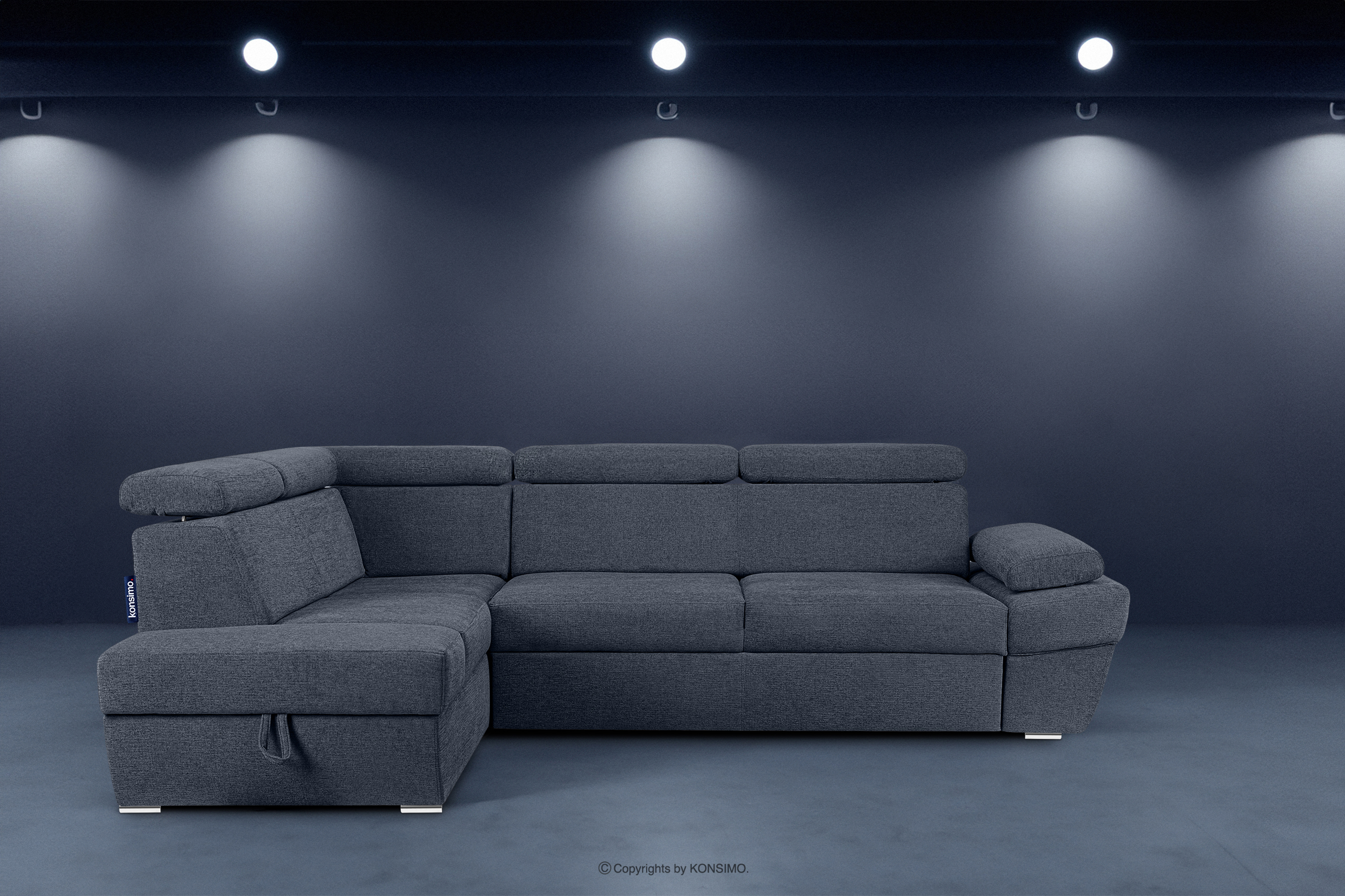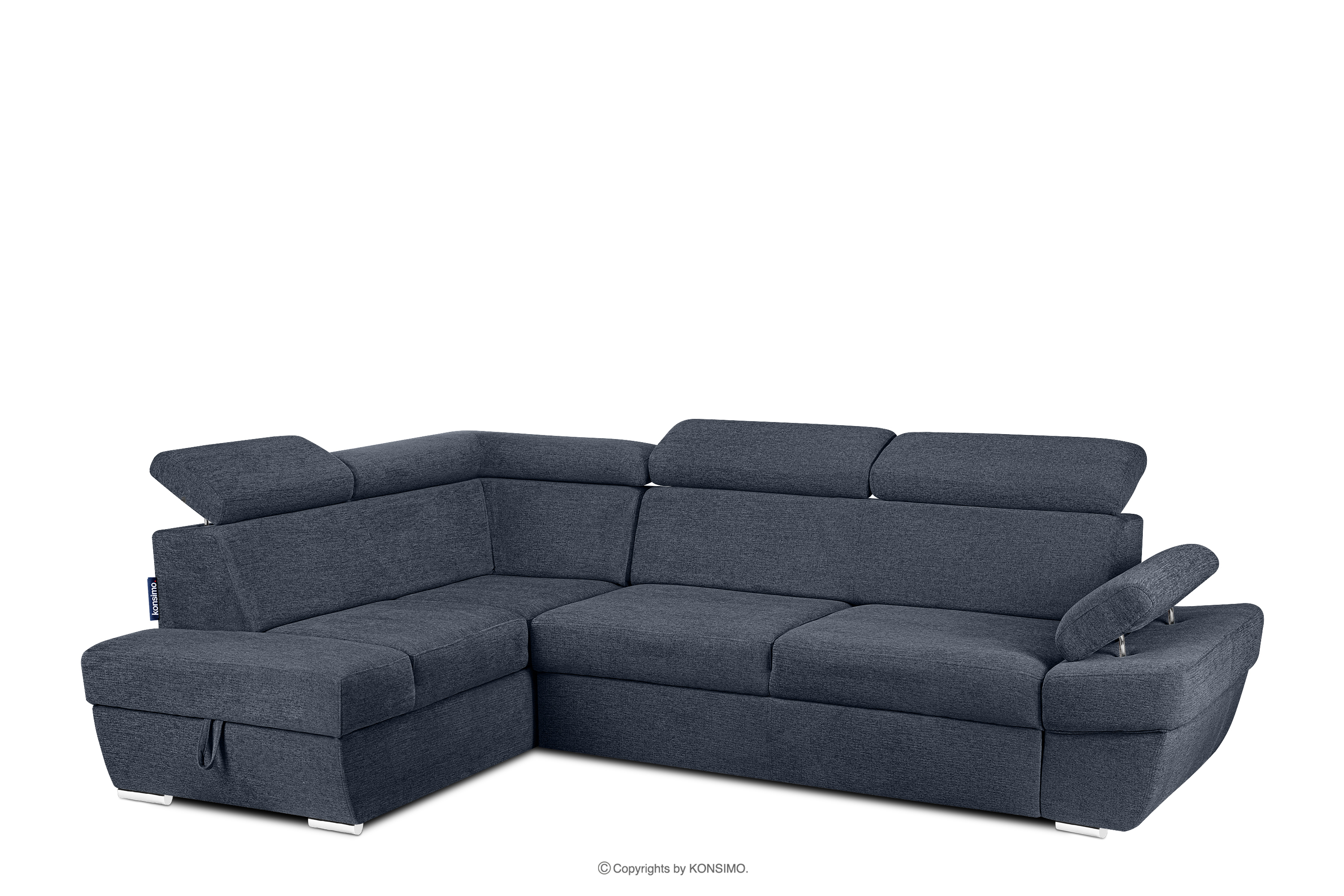 produktu Rohová pohovka s funkciou spania a kontajnerom na posteľnú bielizeň tmavomodrá vľavo