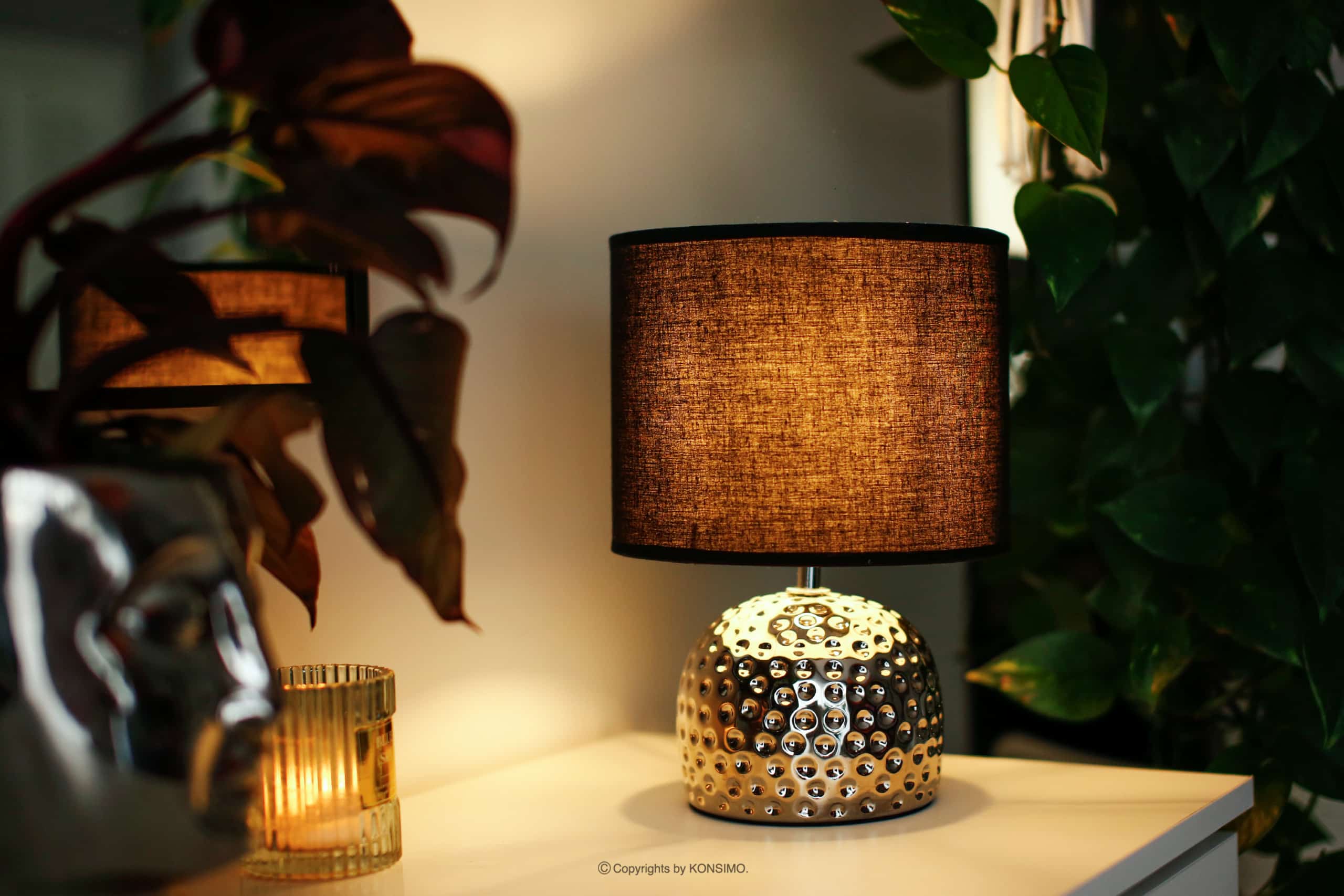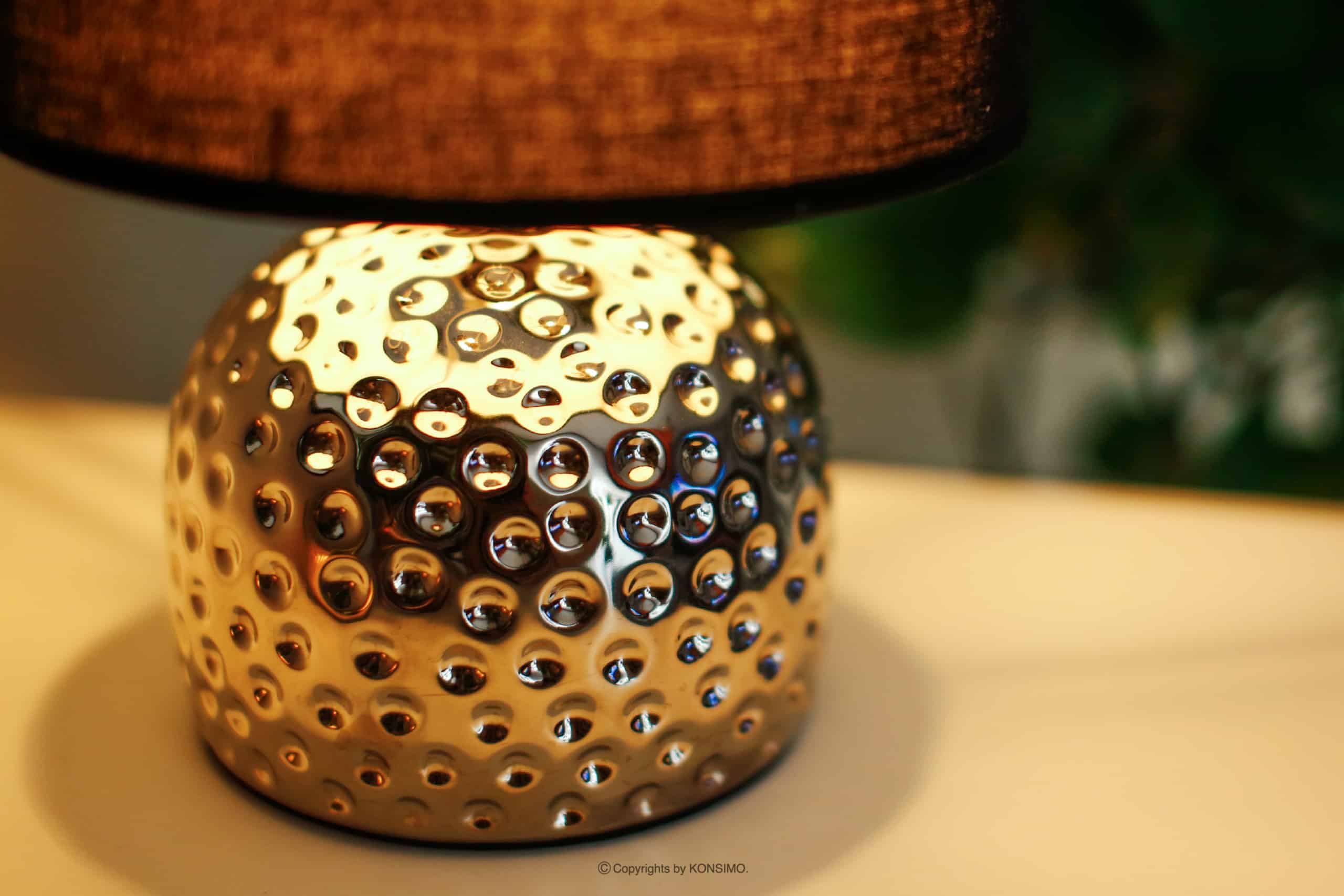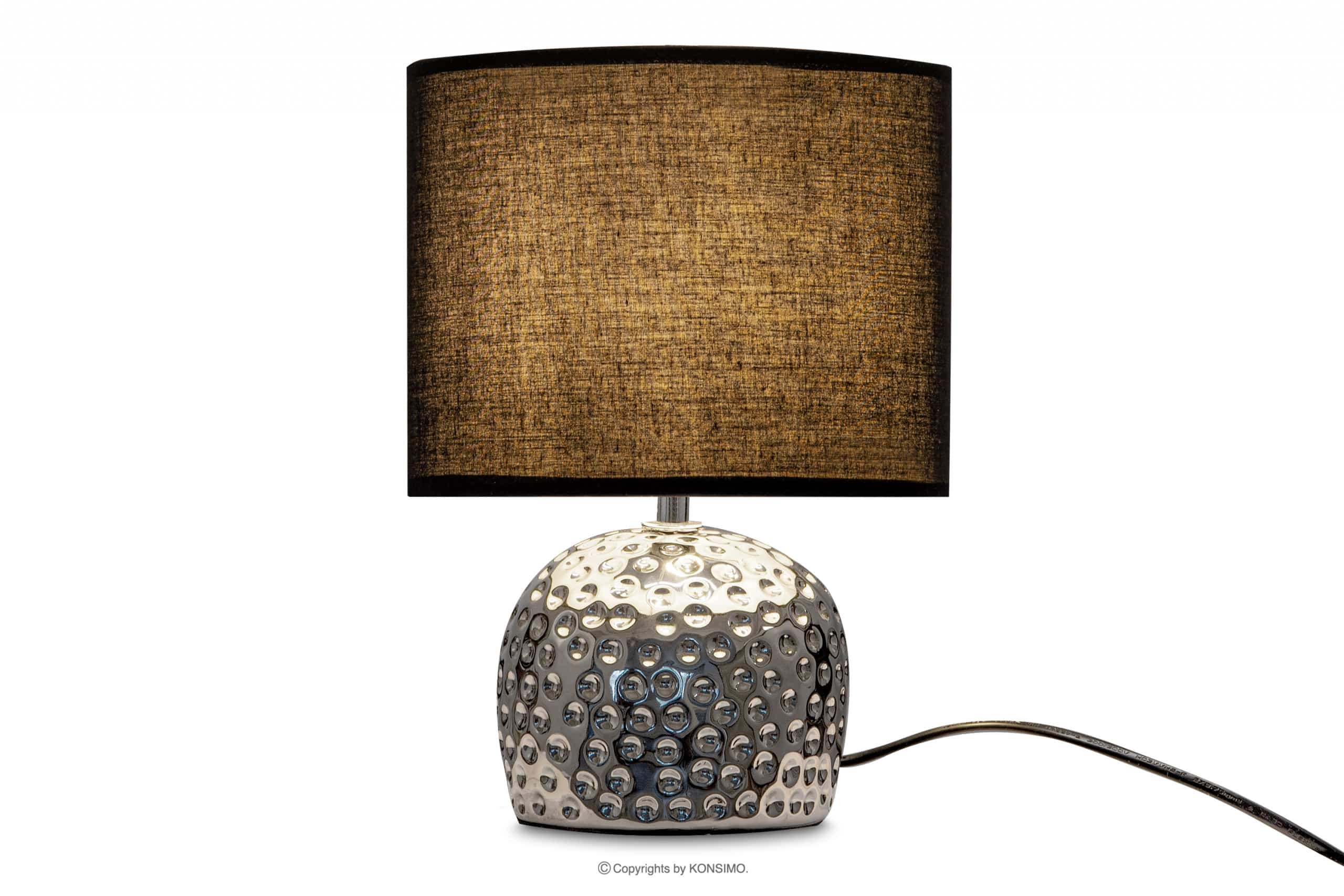 Lampy FRAGI sú dokonalým doplnkom moderných aj klasických interiérov. Úžasne bude vyzerať v spálni na nočnom stolíku, chodbách alebo na komode v obývacej izbe. Stabilná keramická základňa so zaujímavým tvarom, zdobením a strieborným sfarbením dokonale ladí s okrúhlym tienidlom v matnej čiernej farbe. Kvalitné spracovanie zaistí dlhodobé používanie a krásne presvetlí miestnosť.