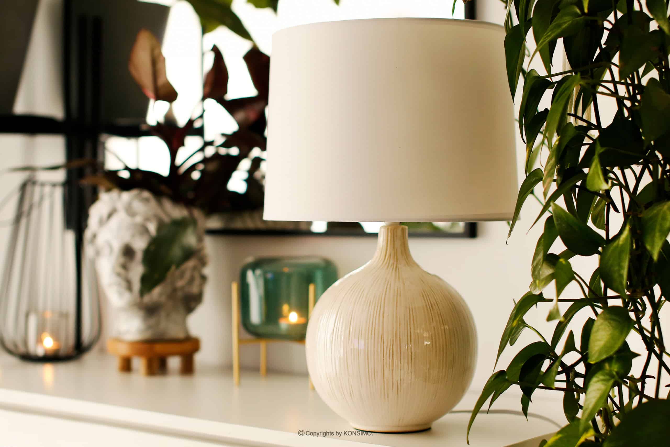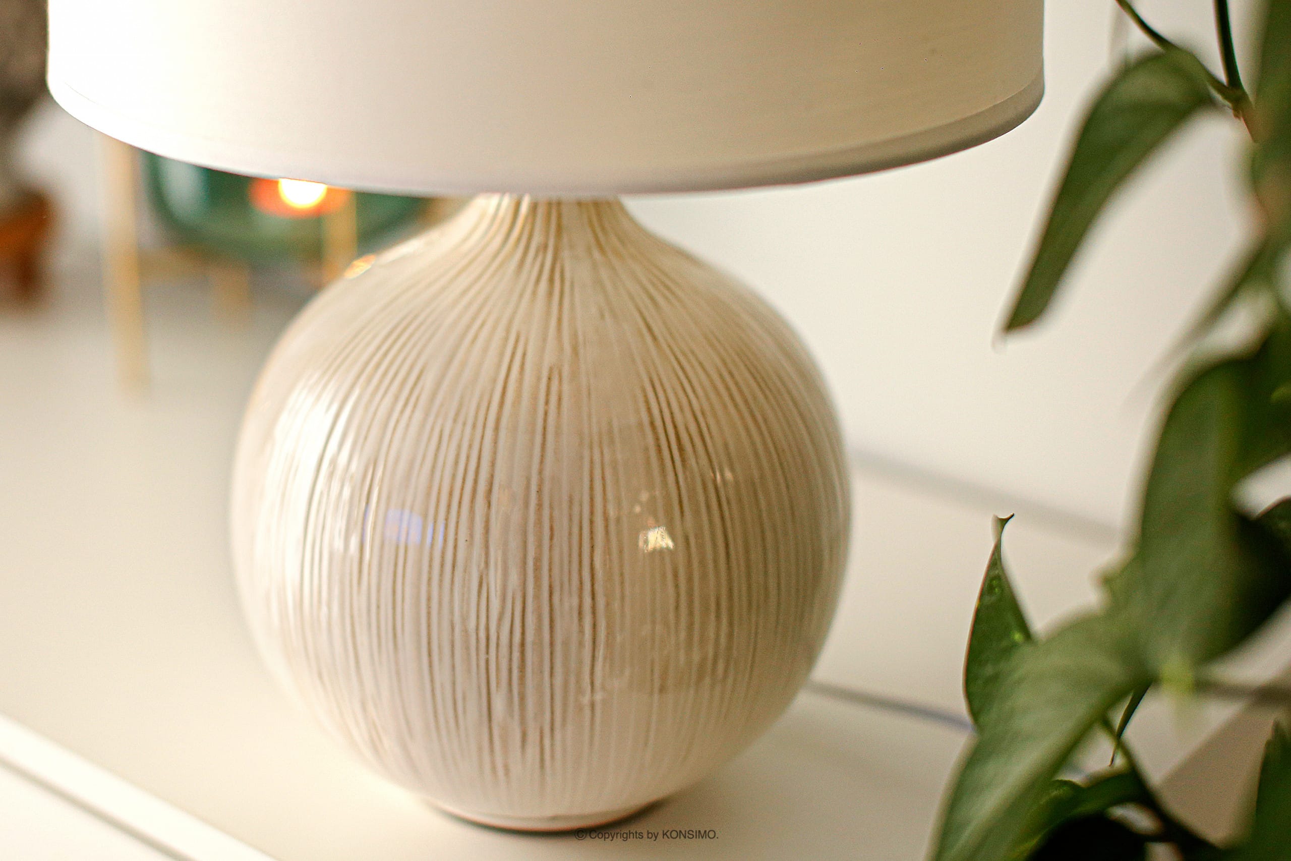 Stolová lampa OTOS na keramickom podstavci dodáva štýlový akcent interiéru v modernom minimalistickom štýle. Charakteristická guľovitá základňa s lesklou povrchovou úpravou bude vyzerať elegantne na komode alebo nočnom stolíku v modernom štýle. Spracovanie je vysoko kvalitné, vďaka použitiu keramickej základne, zaisťujúcej stabilitu a odolnosť po roky.
