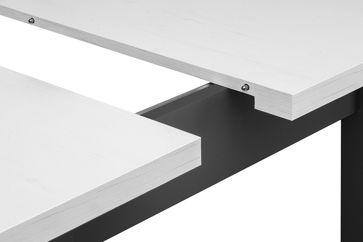 Moderný rozkladací stôl z kolekcie SALUTO je výbornou voľbou do obývačky, jedálne alebo kuchyne. Nohy a rám sú vyrobené z masívneho bukového dreva, vďaka čomu je celá konštrukcia extrémne stabilná a odolná. Doska stola je vyrobená zo silnej 32 mm laminovanej drevotrieskovej dosky.