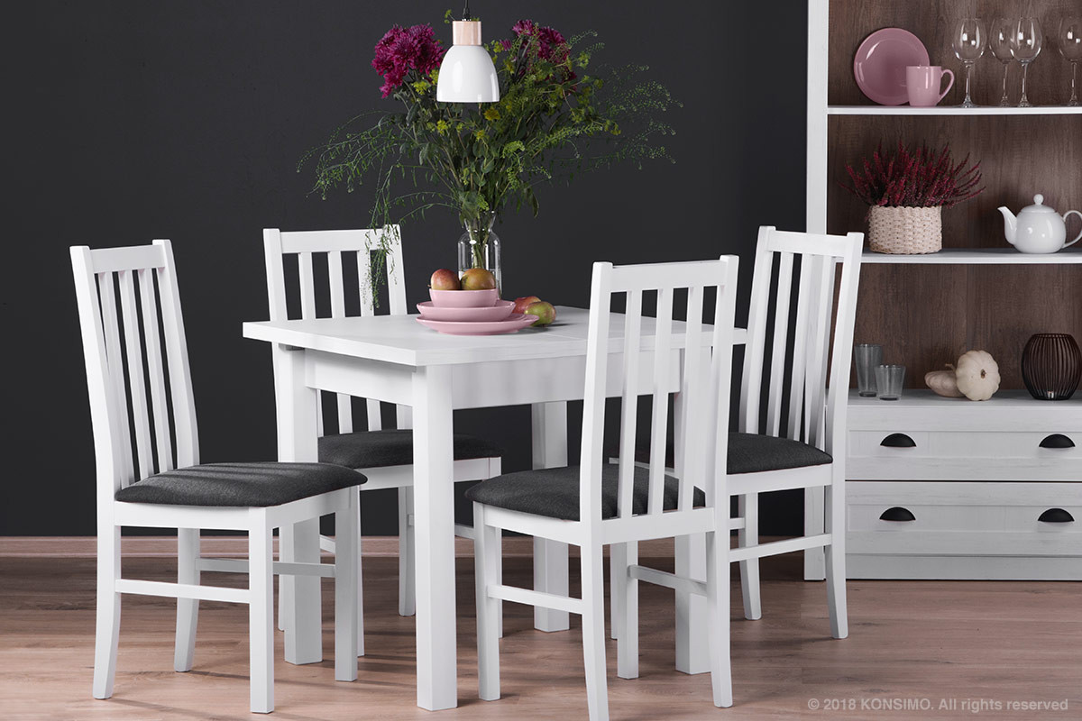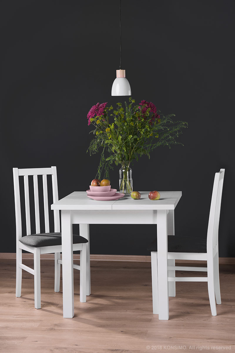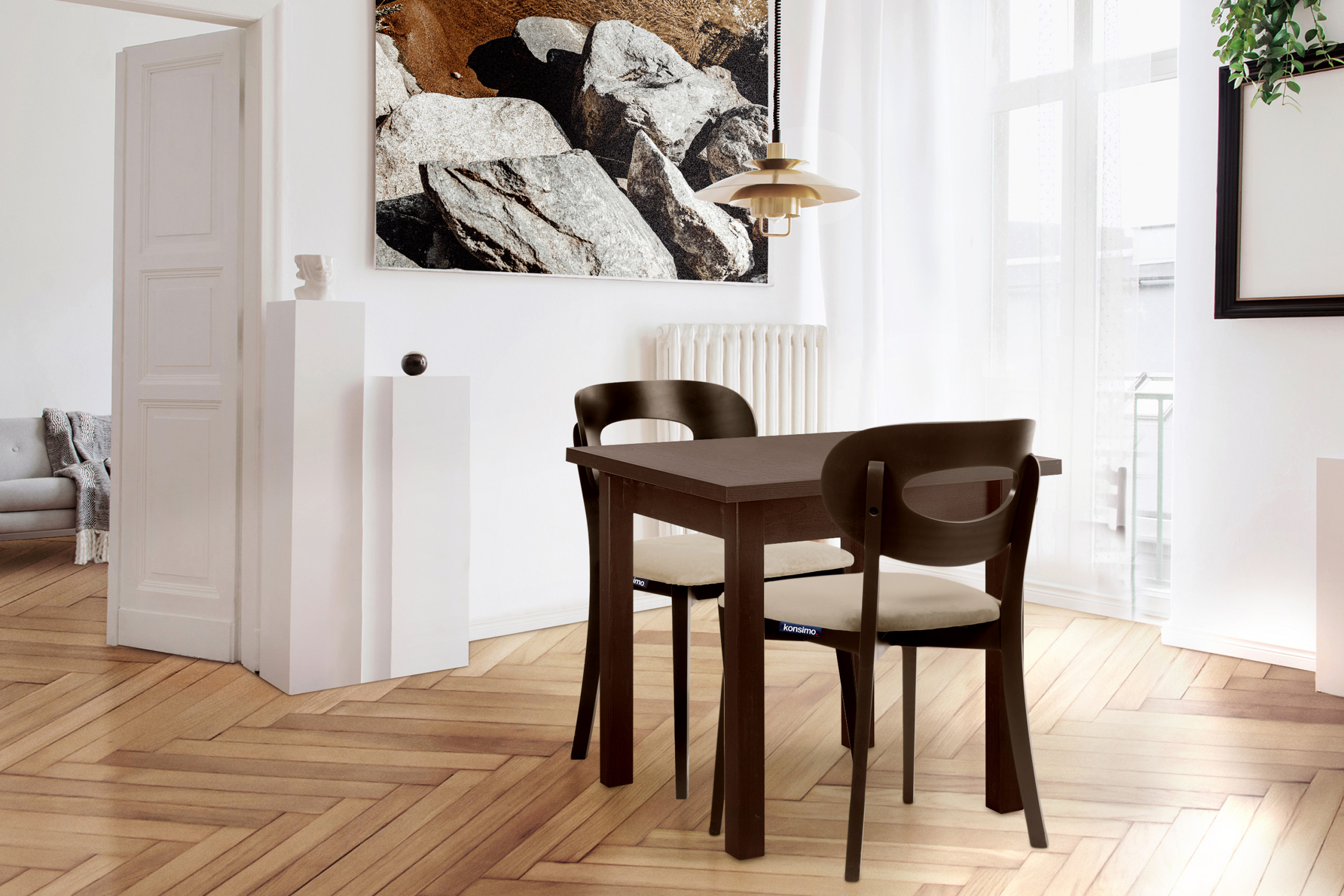 Moderný stôl z kolekcie HOSPE je výbornou voľbou do klasickej obývacej izby, jedálne alebo kuchyne. Nohy a rám sú vyrobené z masívneho bukového dreva, vďaka čomu je celá konštrukcia extrémne stabilná a odolná. Doska stola je vyrobená z 32 mm laminovanej drevotriesky.