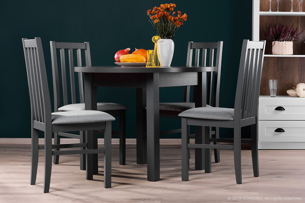 Klasický, okrúhly stôl z kolekcie MENZO je výbornou voľbou do klasickej obývačky, jedálne alebo kuchyne. Nohy a rám sú vyrobené z masívneho bukového dreva, vďaka čomu je celá konštrukcia extrémne stabilná a odolná. Doska stola je vyrobená z 32 mm laminovanej drevotriesky.