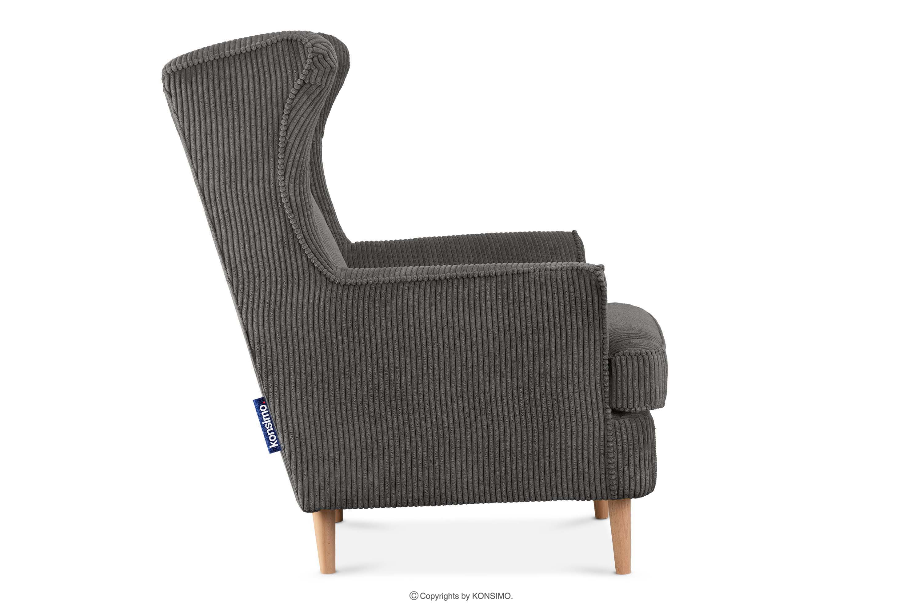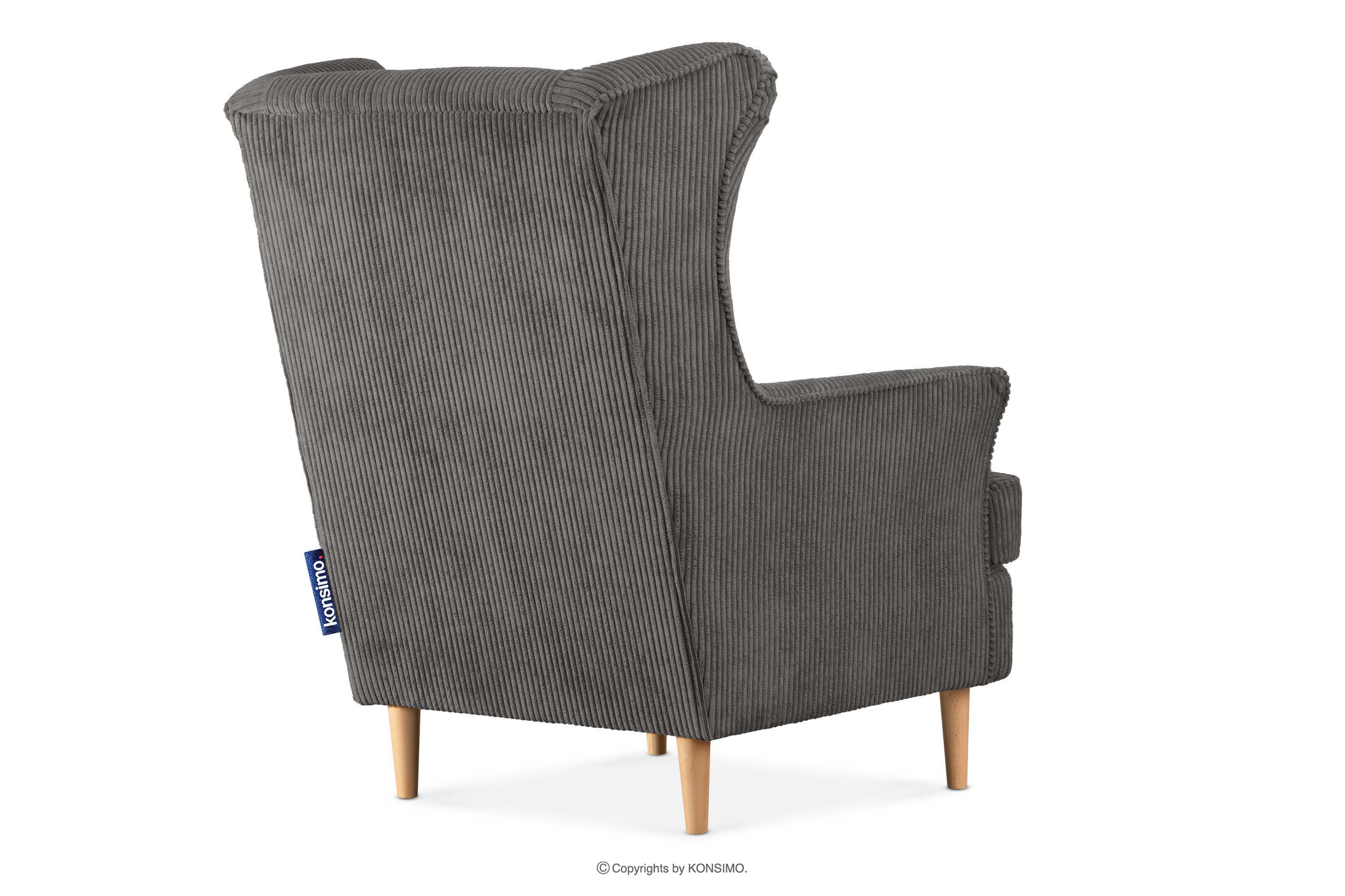 STRALIS Objav celú kolekciu Kreslo ušiak z manšestrovej látky s oceľovým velúrovým vankúšom- farba oceľ
