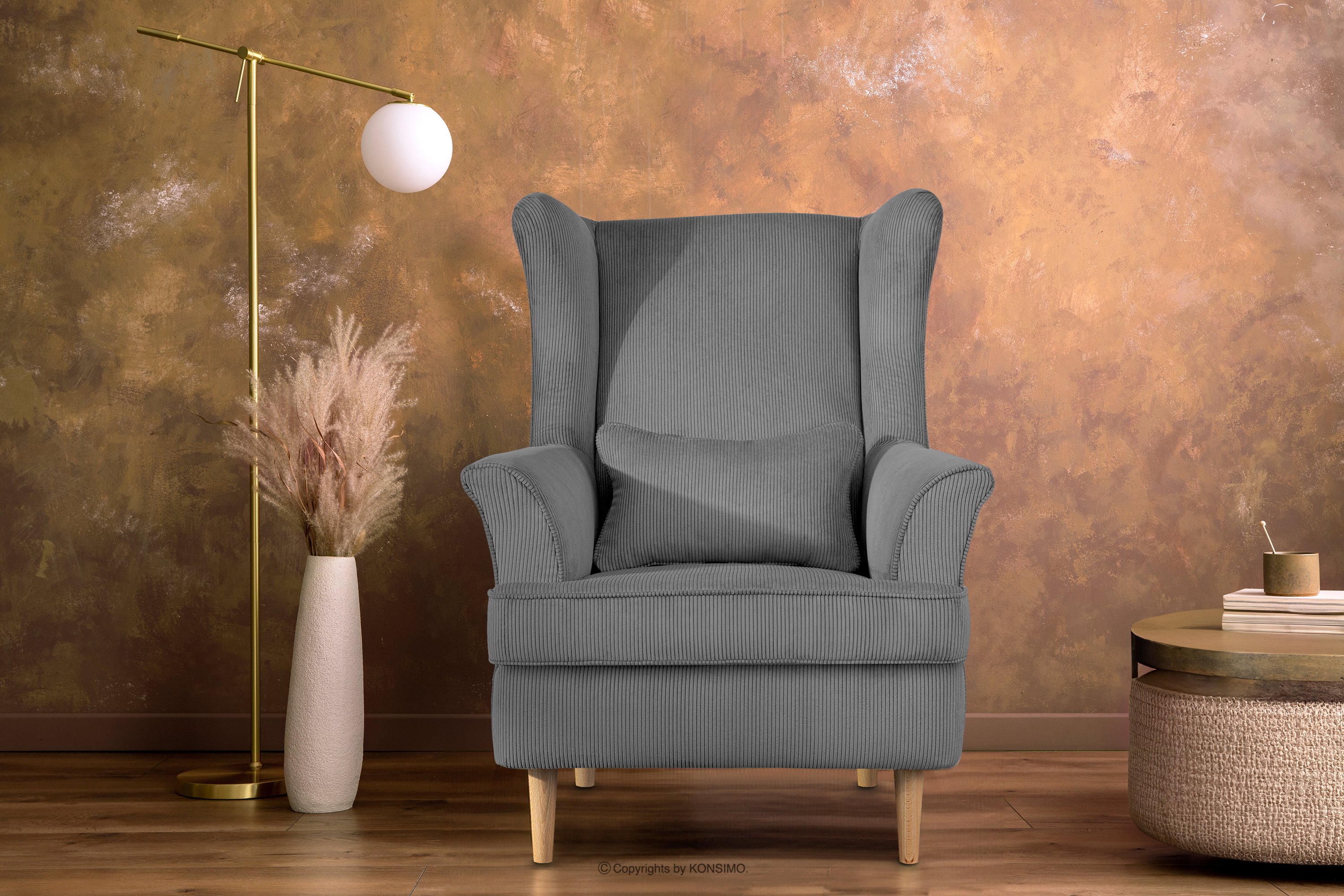 STRALIS Objav celú kolekciu Manšestrové kreslo s drevenými nohami popolavé- farba popielaty