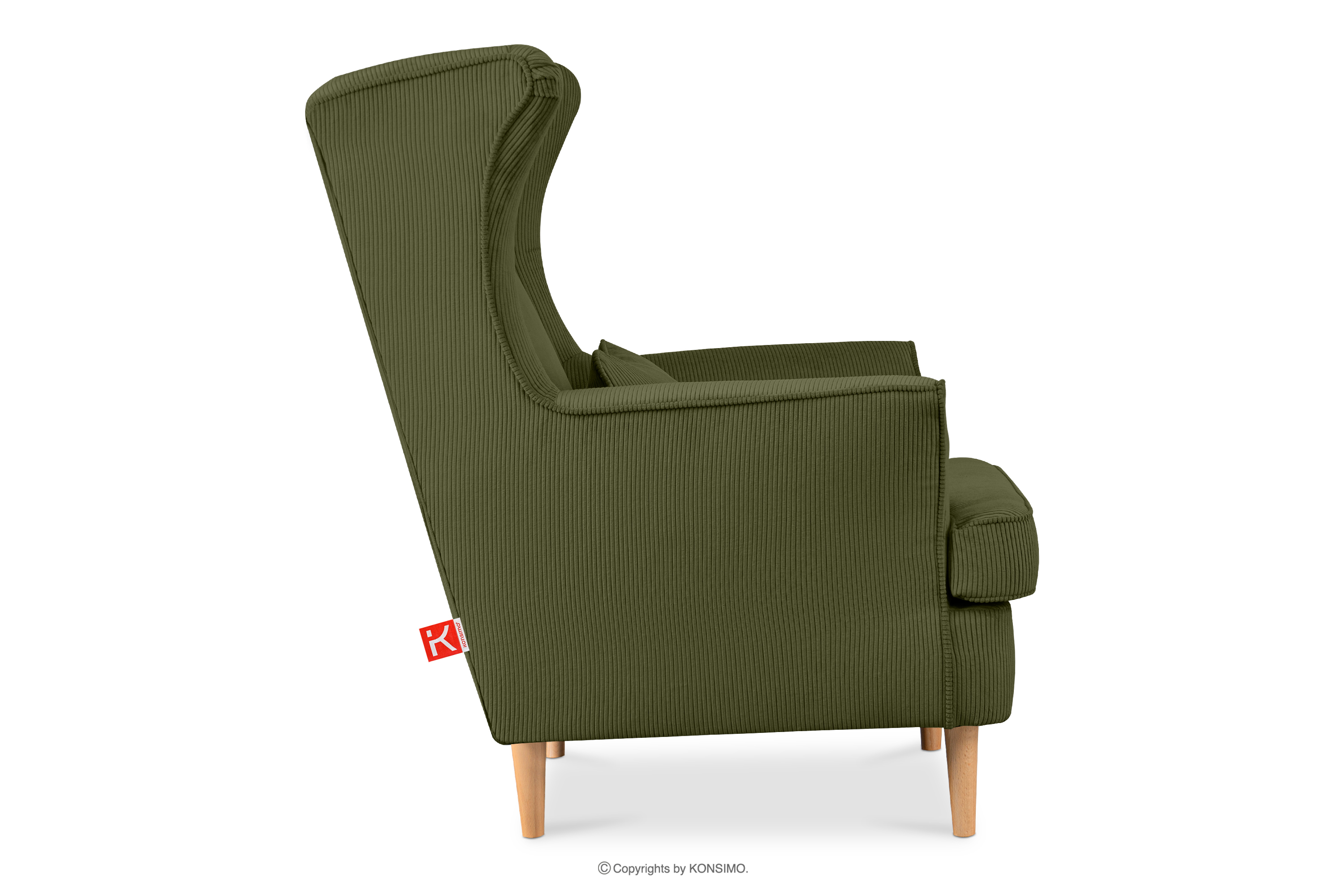 produktu Manšestrové kreslo s drevenými nohami zelené