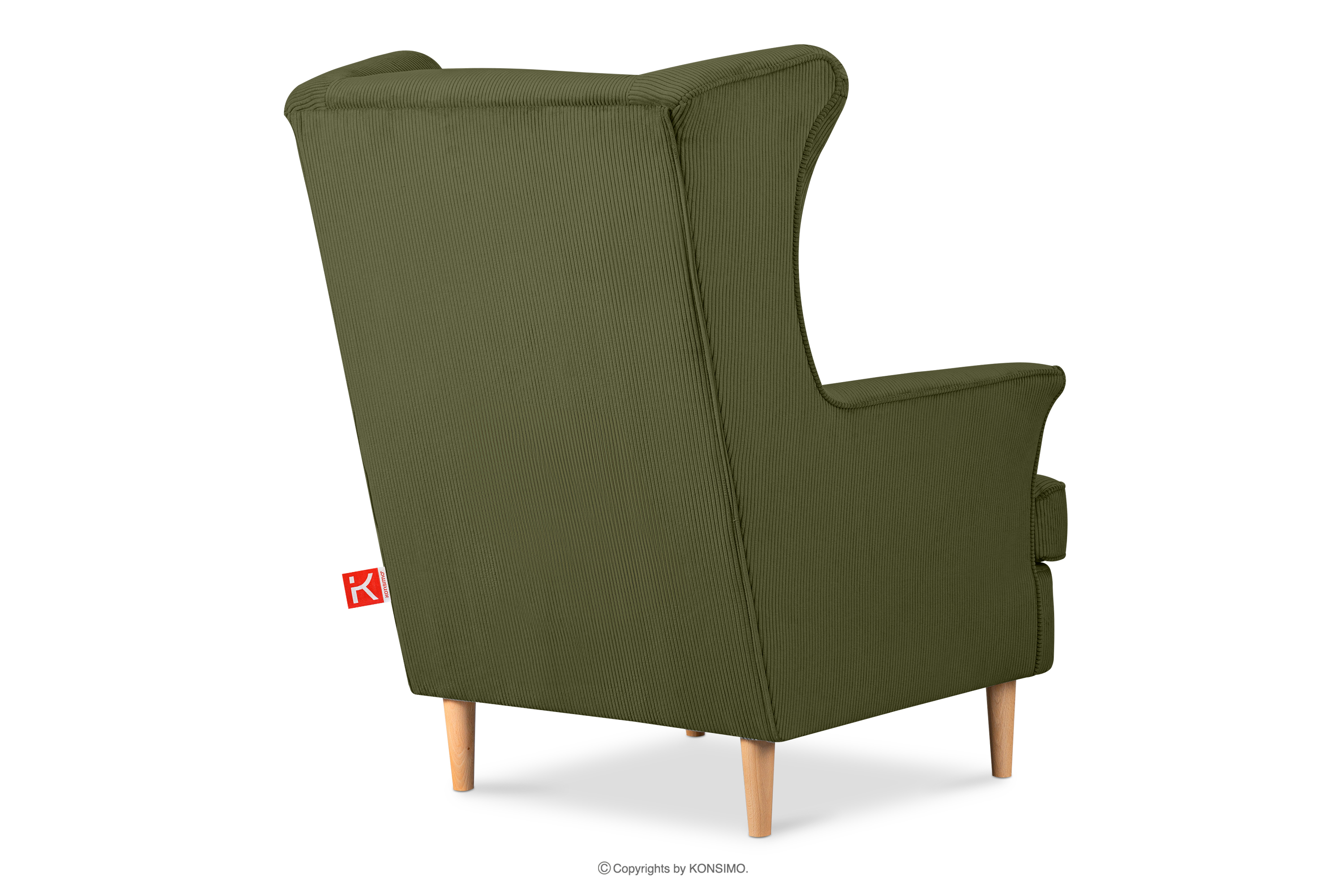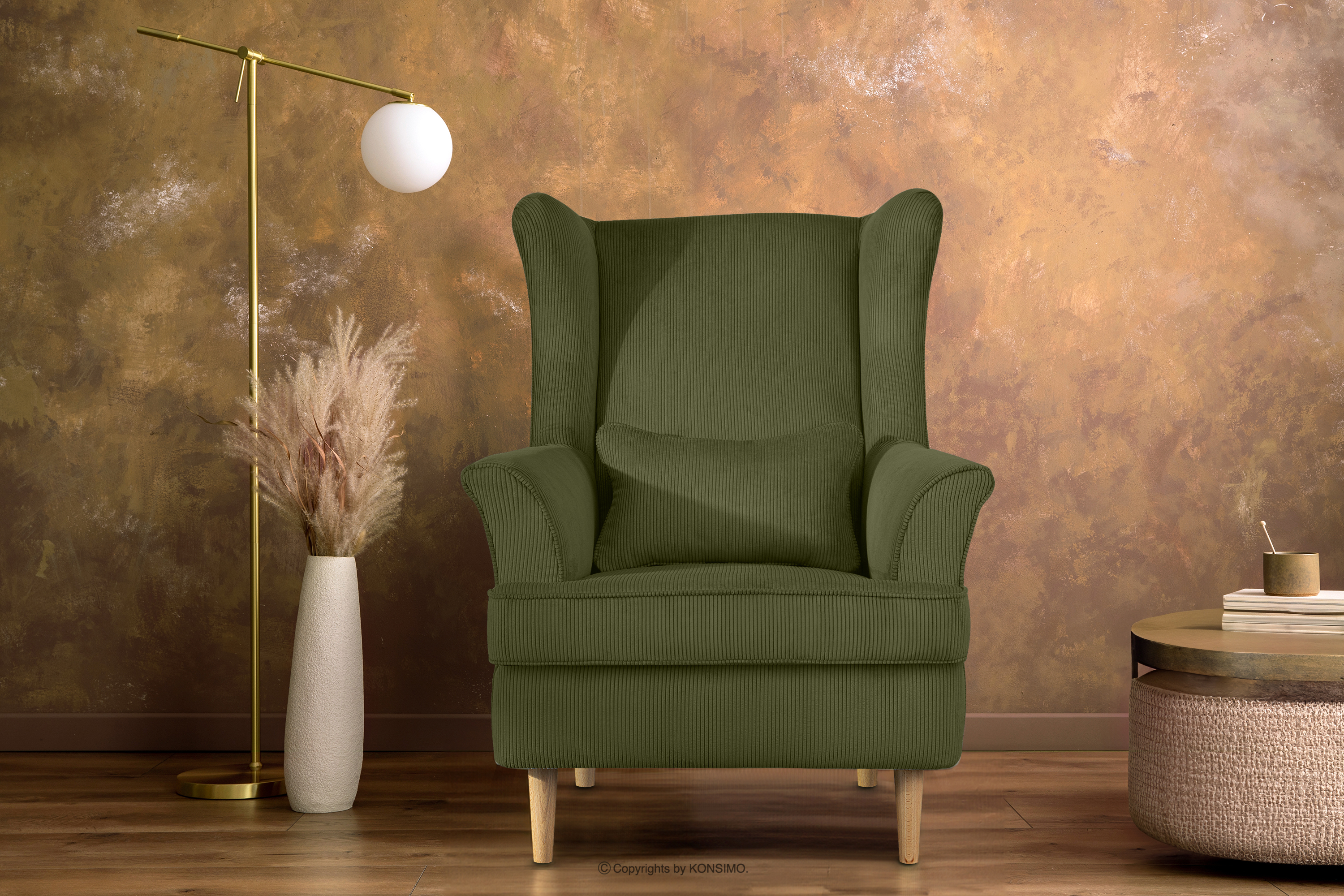 STRALIS Objav celú kolekciu Manšestrové kreslo s drevenými nohami zelené- farba zielony