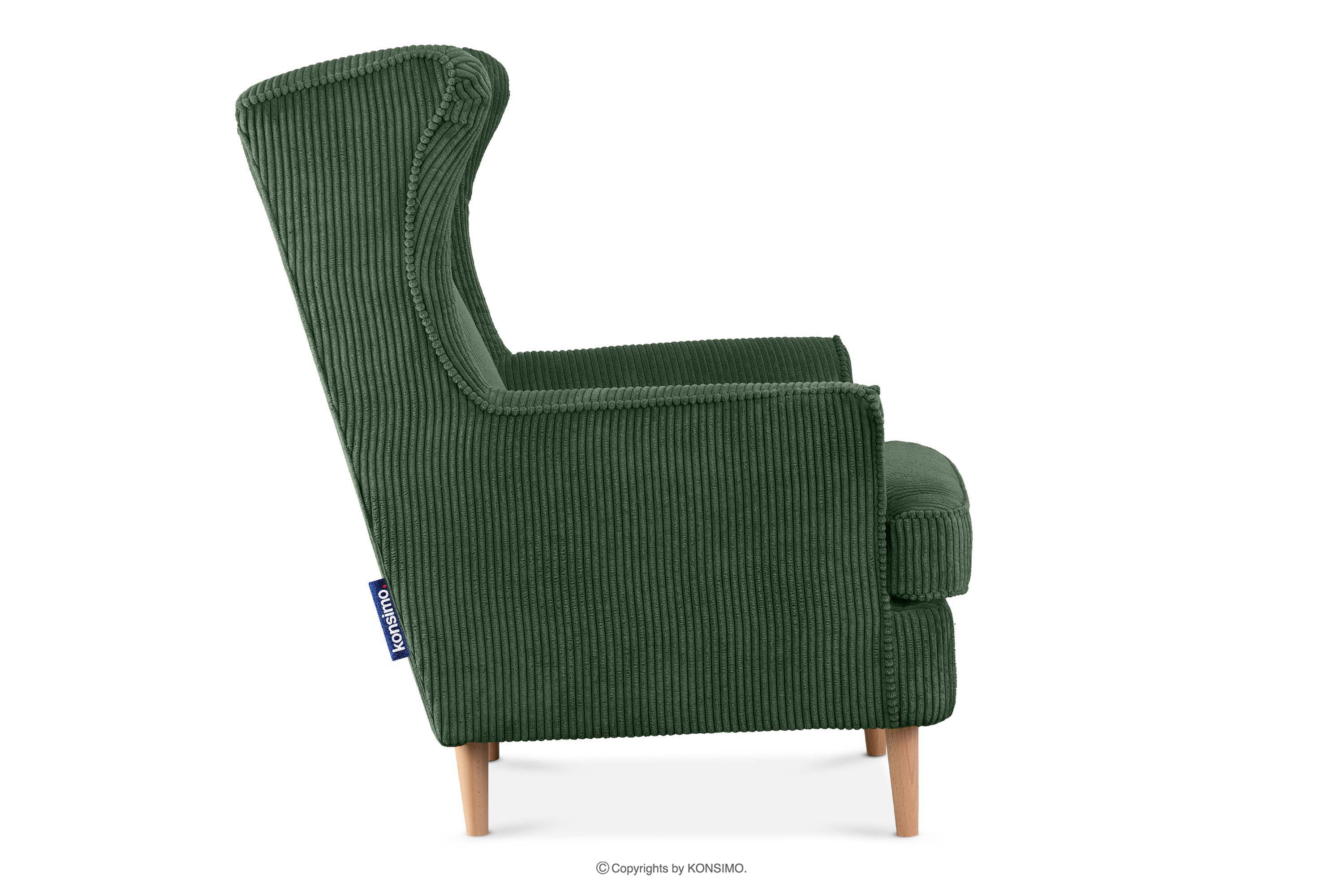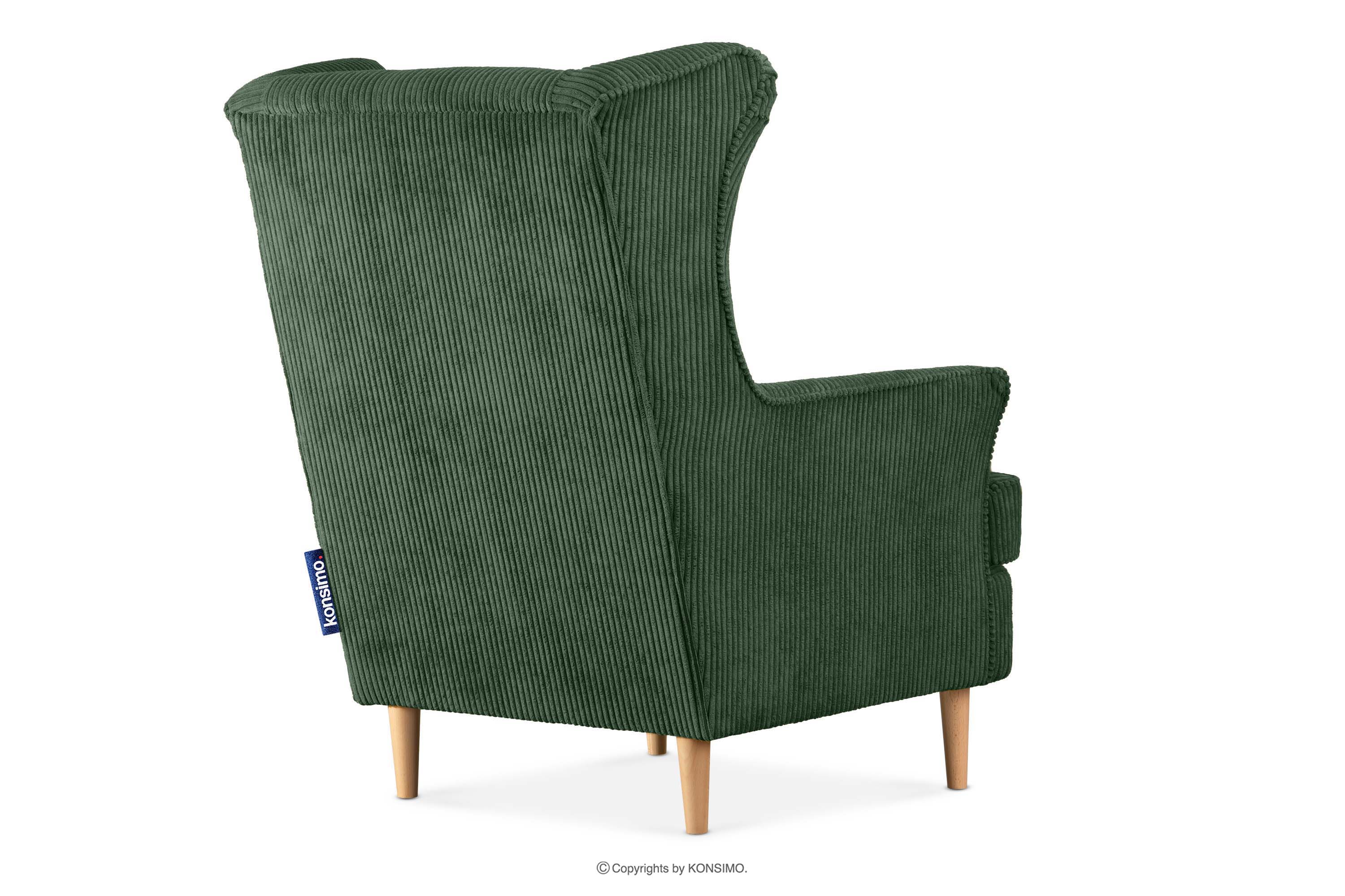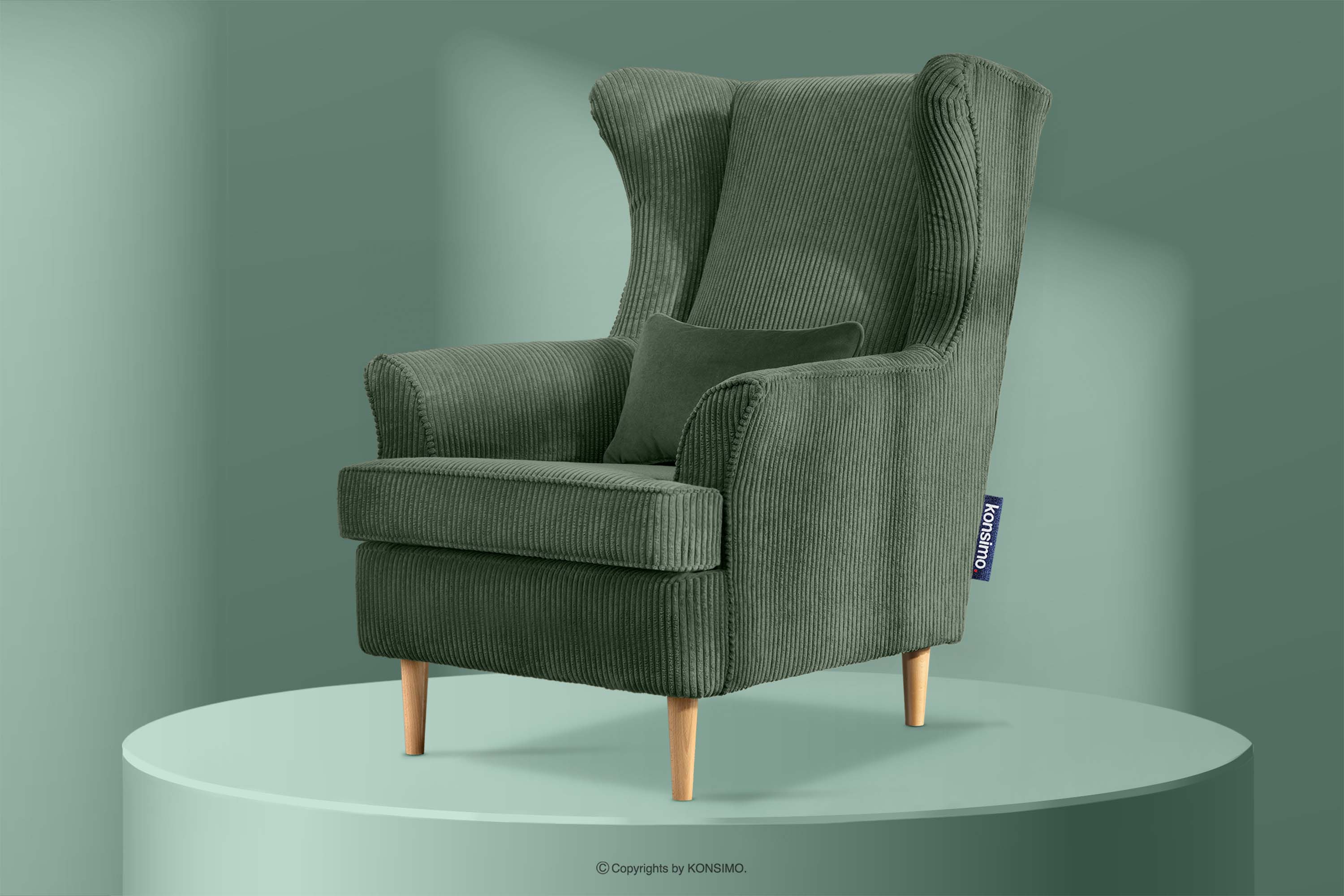 STRALIS Objav celú kolekciu Kreslo ušiak z manšestrovej látky s vankúšom z tmavozeleného velúru- farba tmavozelená