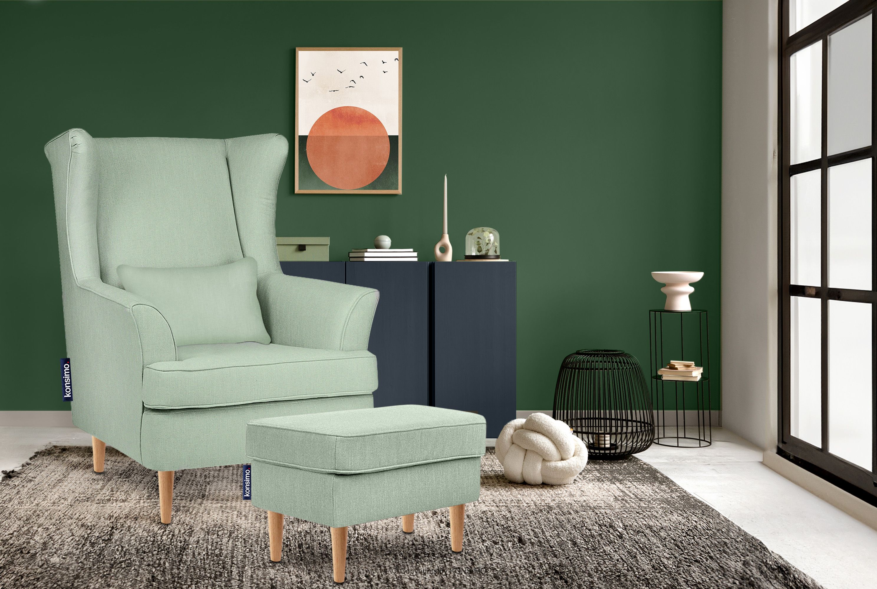 Škandinávske zelené kreslo na nožičkách vnesie do obývačky alebo spálne nevšednú atmosféru. Jedinečná farba, jemné línie a prvky z masívneho dreva spolu vyzerajú skvele. Hodí sa do klasických a škandinávskych aranžmánov. Vo výraznej farbe bude skvele fungovať ako ústredný bod v obývacej izbe. Jeho stredne tvrdé sedadlo a optimálne tvarované mäkké operadlo a boky sú navyše zárukou relaxu a dokonalého odpočinku každý deň.