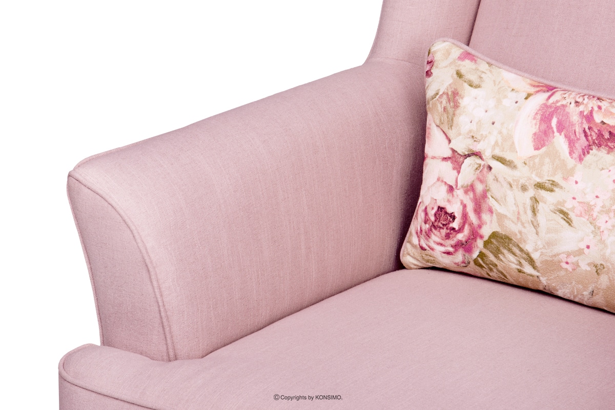 Škandinávske kreslo čalúnené károvanou látkou v ružovej farbe je ozdobené ozdobným vankúšom s výrazným vzorom. Nábytok je zvýraznený drevenými nohami s rôznou výškou - 14 cm vpredu a 16 cm vzadu. Na sedadle je použitá vysokoelastická pena HR 3042 spolu s vlnitou pružinou, ktorých kombinácia zaručuje, že sa sedadlo nezhrnie a vydrží dlhé roky. Najdôležitejšie je, že škandinávske kreslo STRALIS vyzerá skvele samostatne alebo v spoločnosti pufu a pohovky z tejto kolekcie.