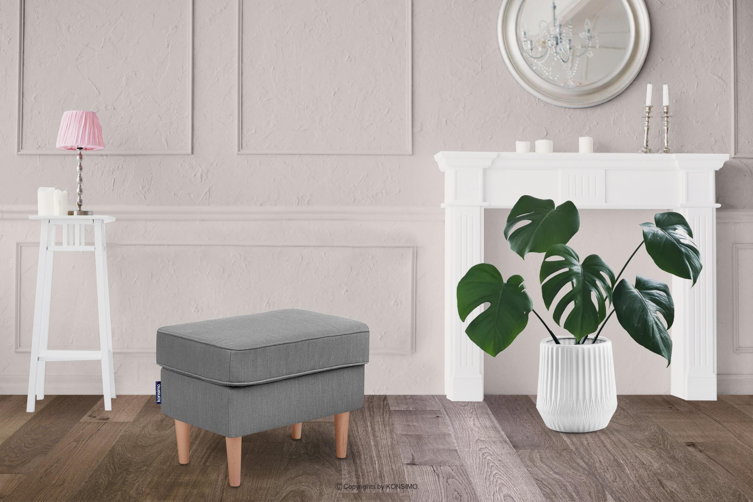 Škandinávsky puf čalúnený tkanou látkou v sivej farbe vyzerá skvele samostatne alebo v spoločnosti kresla a pohovky z tejto kolekcie. V sedáku sa používa vlnitá pružina, ktorá zaručuje, že sa sedák nezhrnie a vydrží dlhé roky. Pevnú konštrukciu podopierajú vysoké nohy z prírodného dreva. Kvalitné čalúnenie z príjemnej na dotyk tkanej látky je nielen odolné voči oderu, ale sa aj ľahko udržiava v čistote.