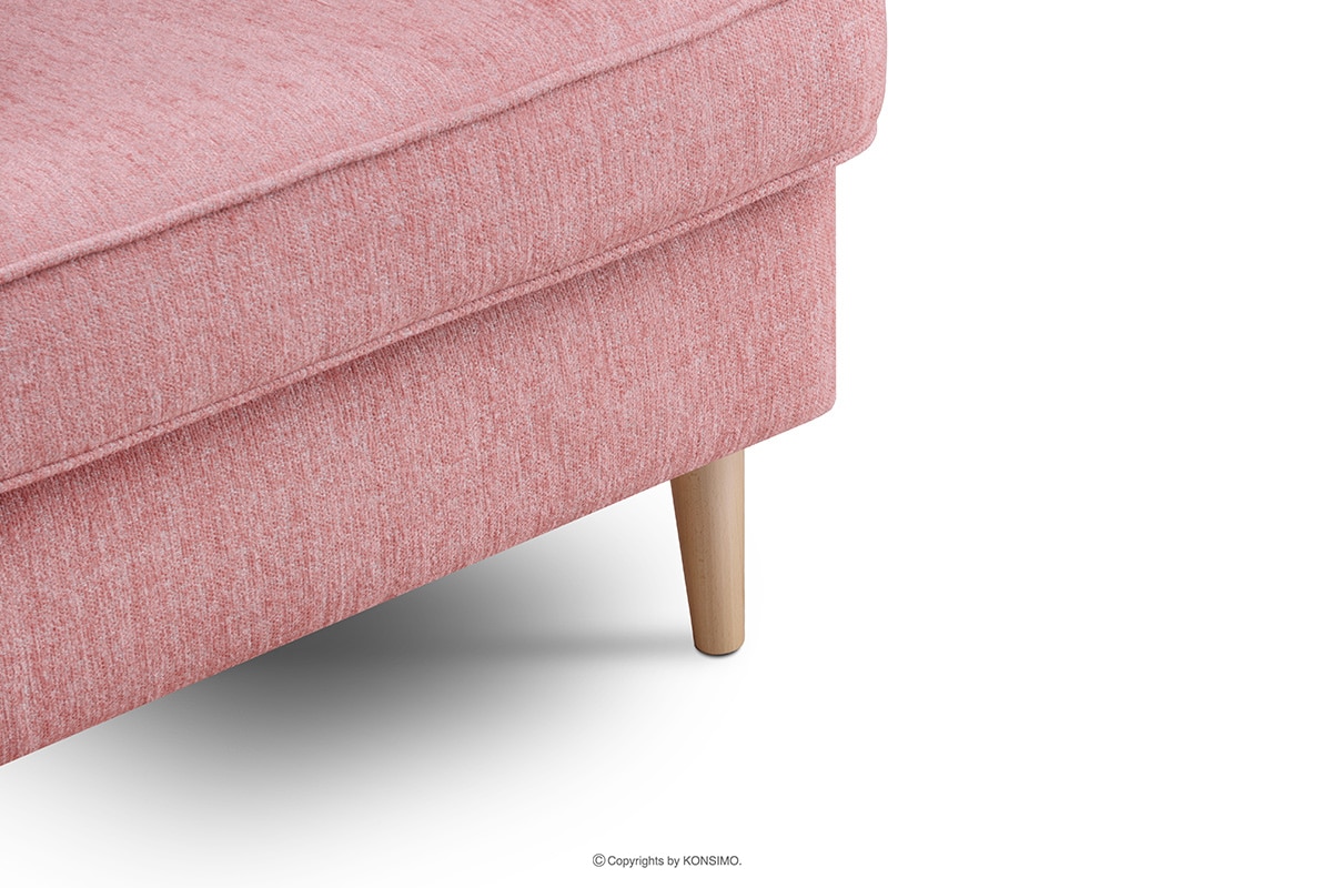 Škandinávsky puf čalúnený károvanou látkou v ružovej farbe vyzerá skvele samostatne alebo v spoločnosti kresla a pohovky z tejto kolekcie. Na sedadle sa používa vlnitá pružina, ktorá zaručuje, že sa sedadlo nezhrnie a vydrží dlhé roky. Pevnú konštrukciu podopierajú vysoké nohy z prírodného dreva. Kvalitné čalúnenie z príjemnej na dotyk tkanej látky je nielen odolné voči oderu, ale sa aj ľahko udržiava v čistote.