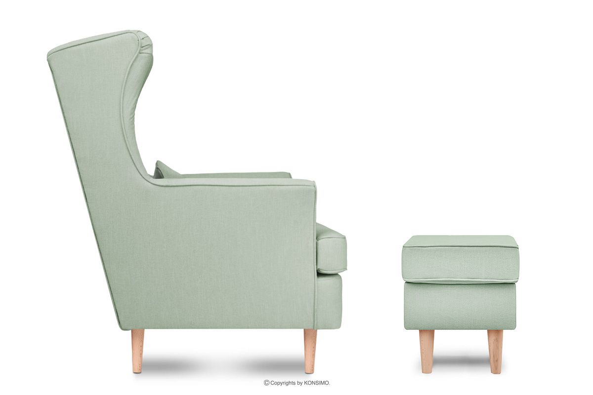 STRALIS Objav celú kolekciu Kreslo a puf na drevených nohách mincovne- farba mäta