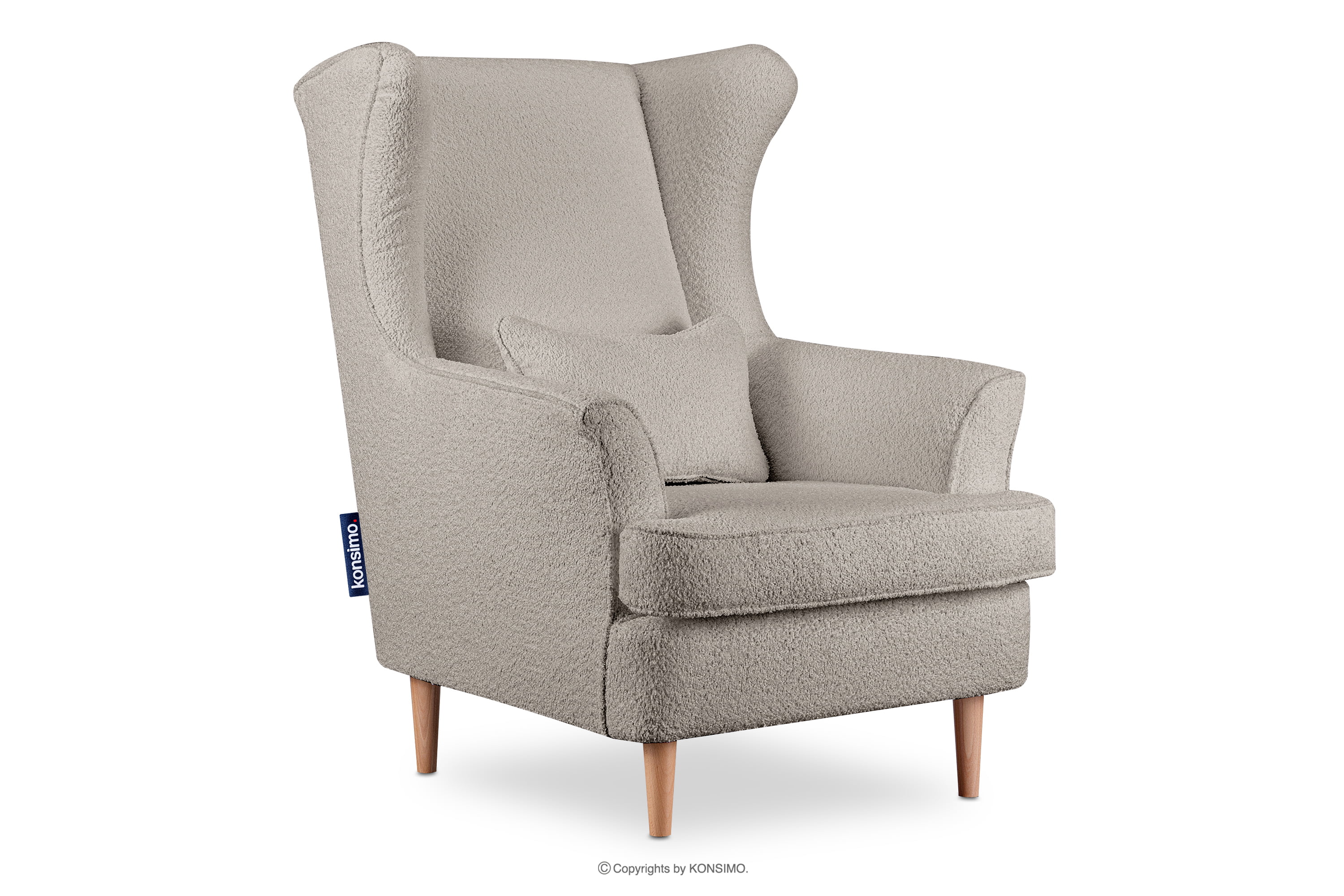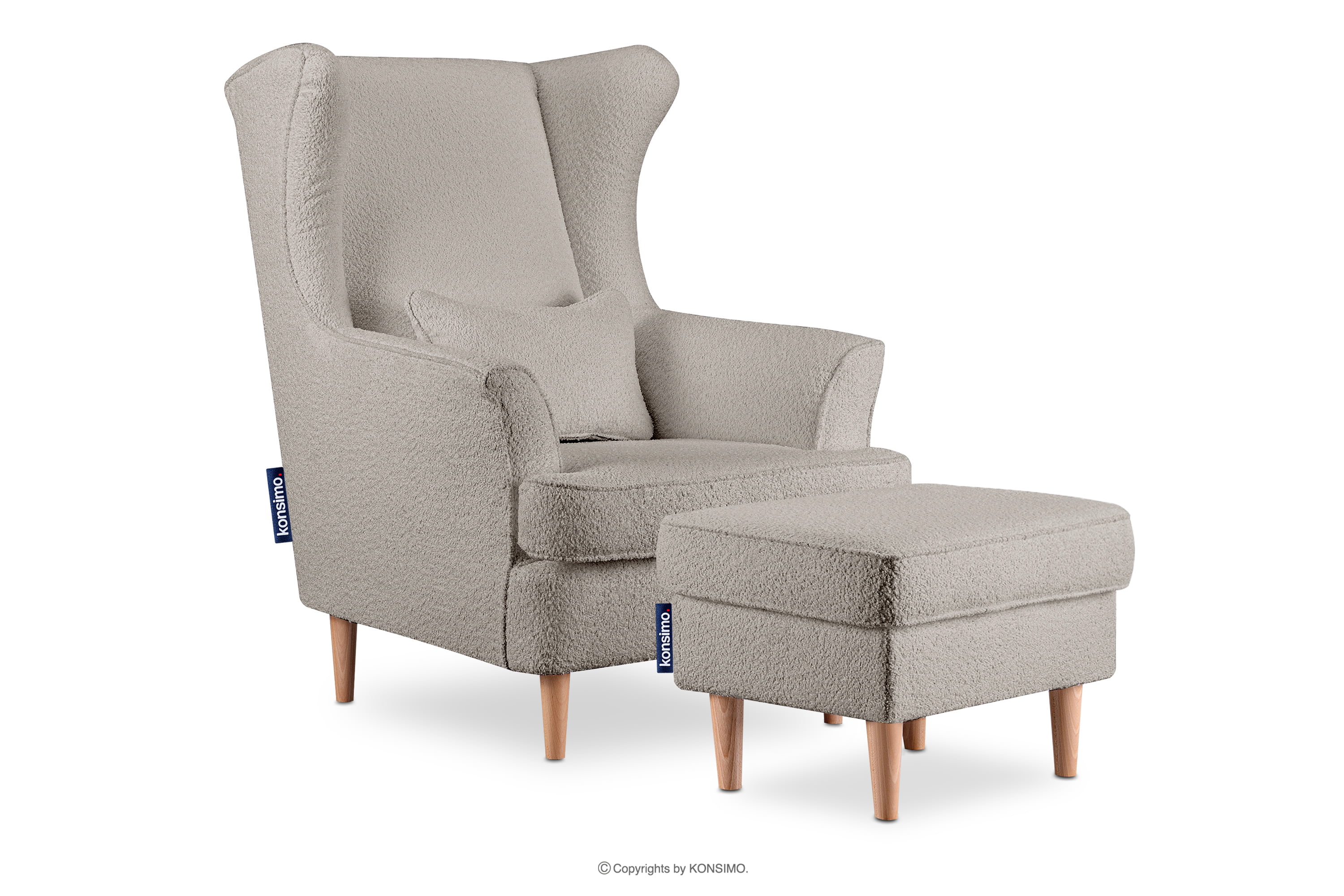 Kreslo a puf na drevených nohách béžové STRALIS - farba béžová