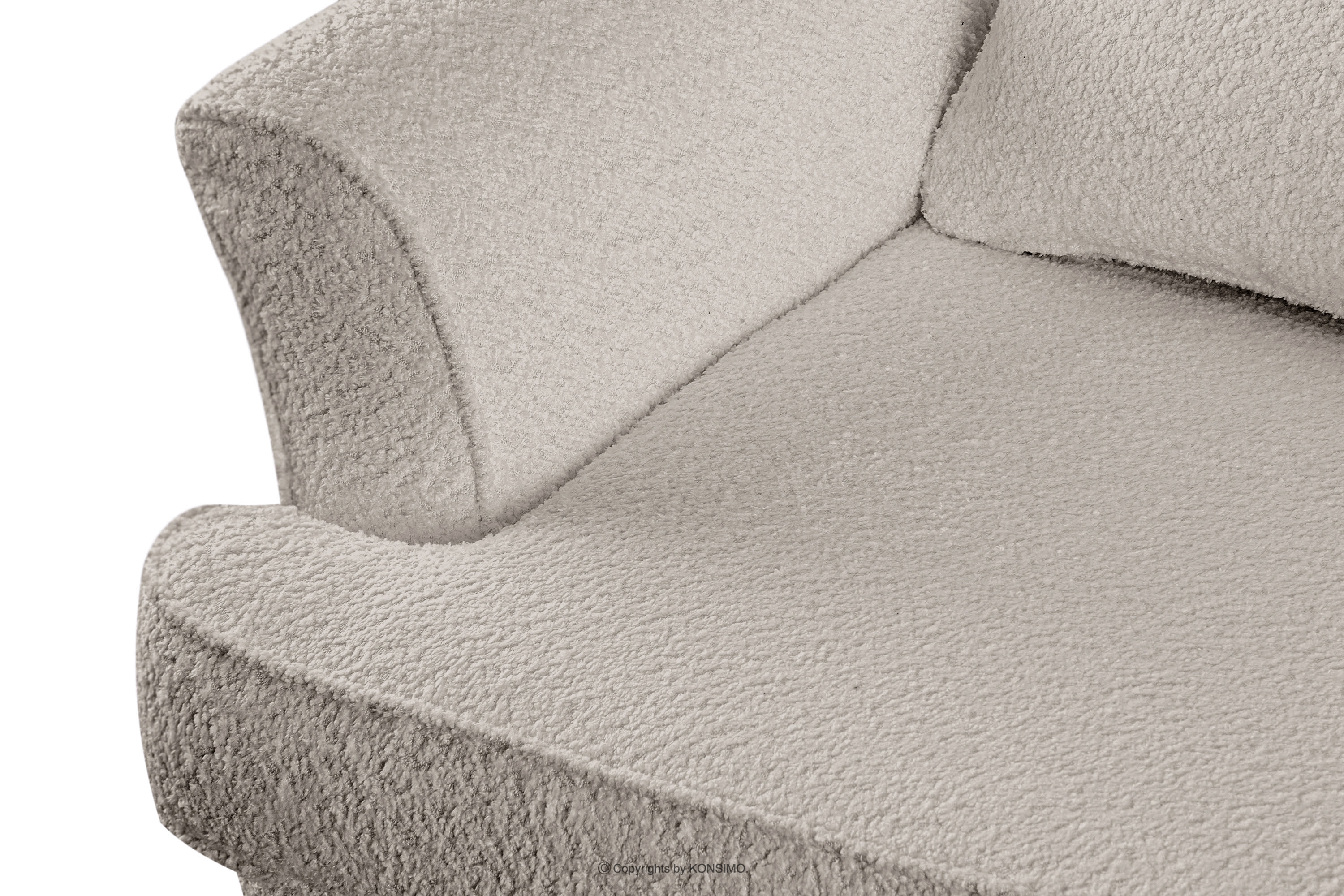Škandinávske kreslo a puf, čalúnené látkou príjemnou na dotyk, je zdobené ozdobným vankúšom s výrazným vzorom. Kreslo je zvýraznené drevenými nohami s rôznou výškou - 14 cm vpredu a 16 cm vzadu, zatiaľ čo puf má 15 cm. Na sedadle kresla sa používa vysokoelastická pena HR 3042 spolu s vlnitou pružinou, ktorých kombinácia zaručuje, že sa sedadlo nezhrnie a vydrží dlhé roky. Najdôležitejšie je, že súprava vyzerá skvele aj v sprievode pohovky.