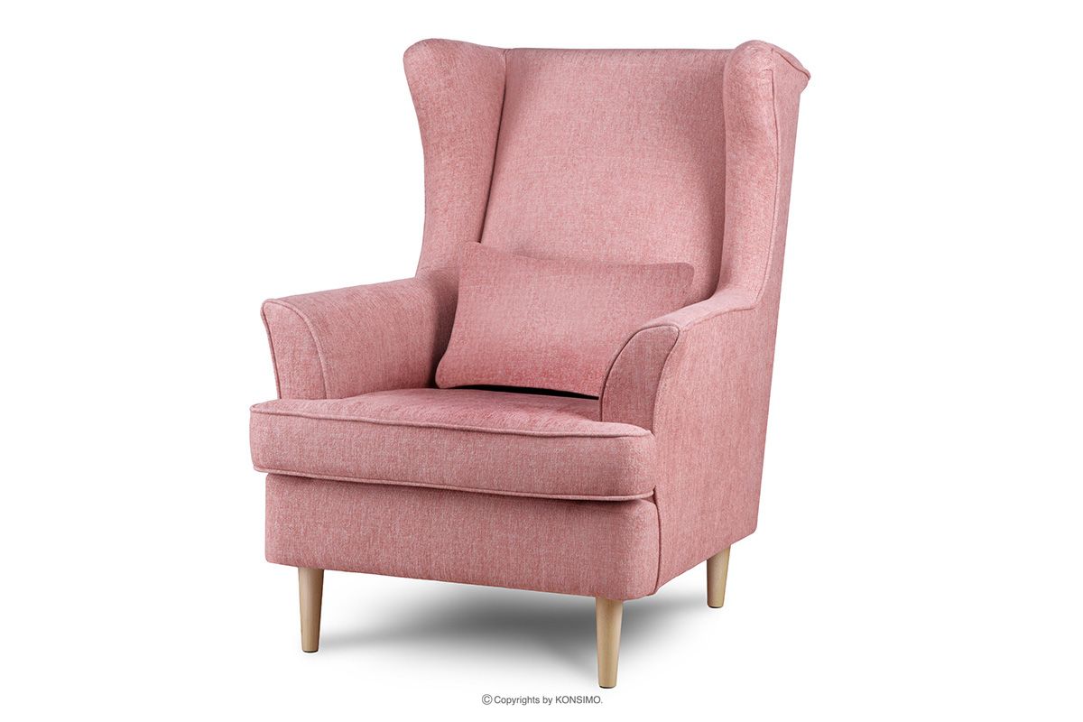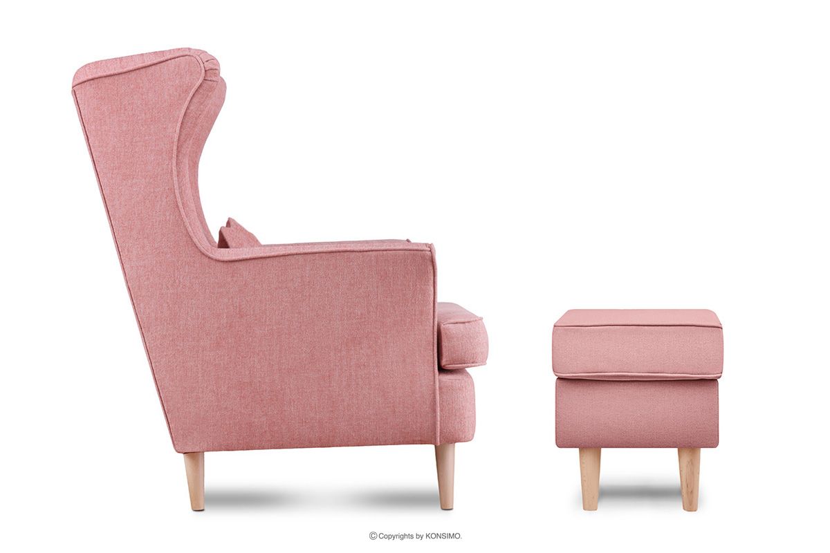 Kreslo a puf na drevených nohách Coral STRALIS - farba koralová