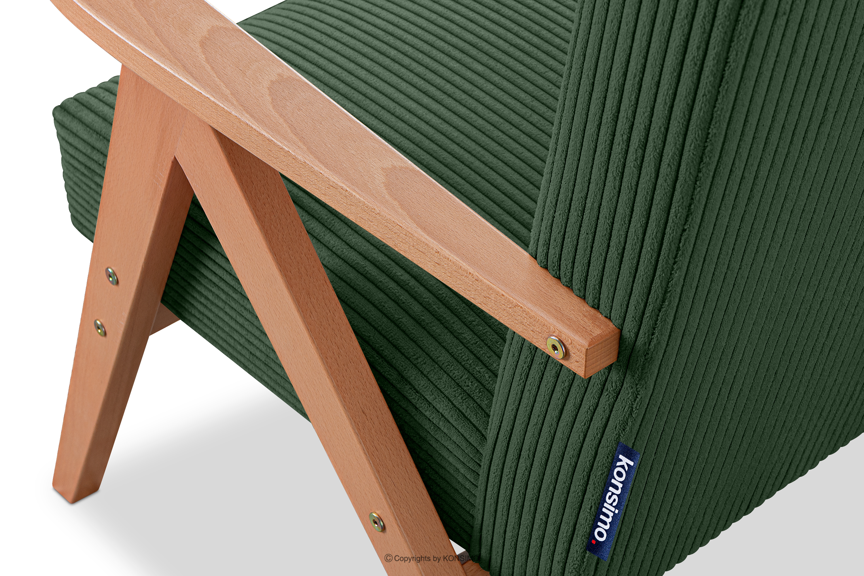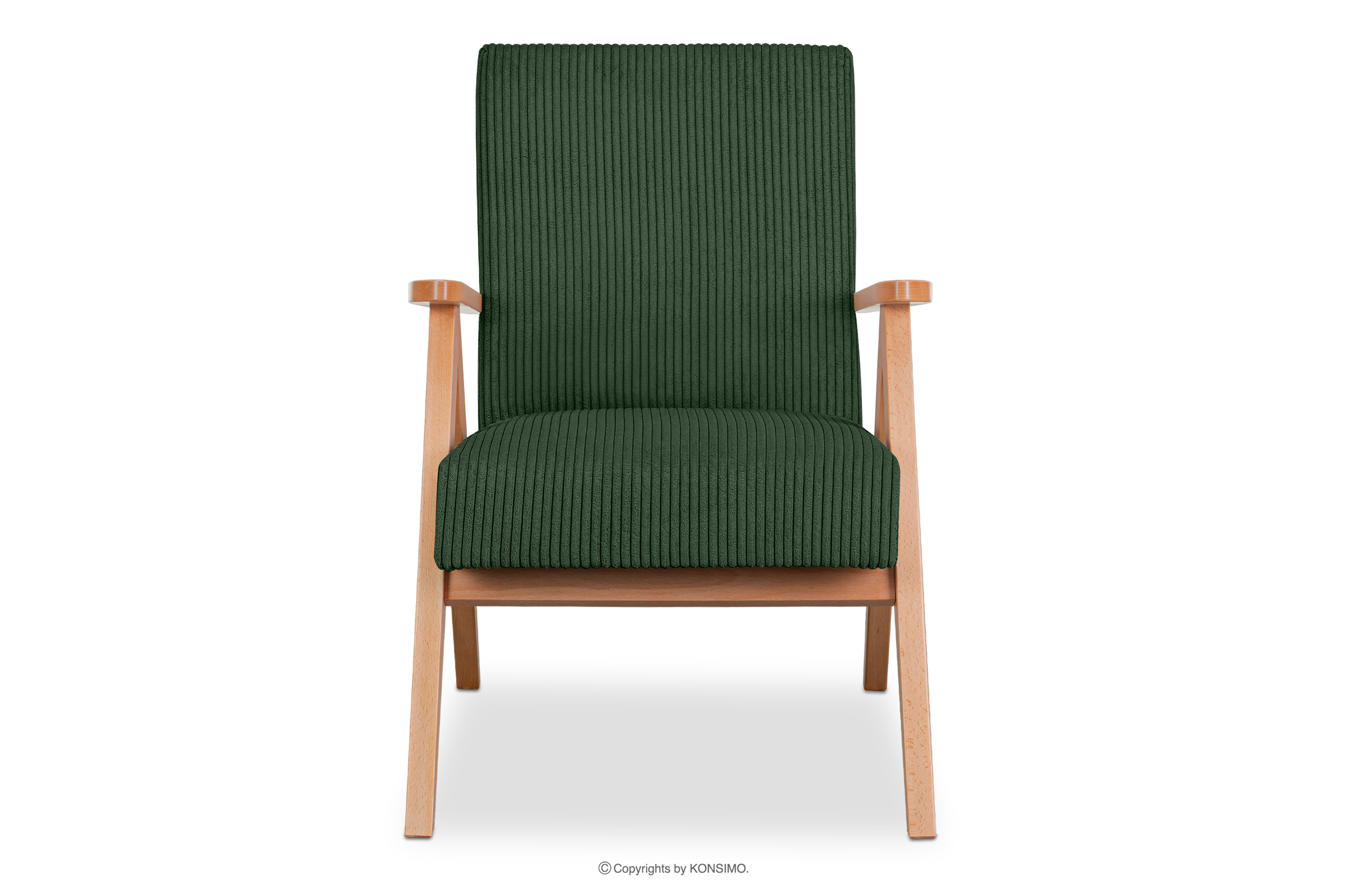 NASET Objav celú kolekciu Kreslo PRL v manšestrovej látke tmavozelená/svetlý dub- farba tmavozelená/svetlý dub