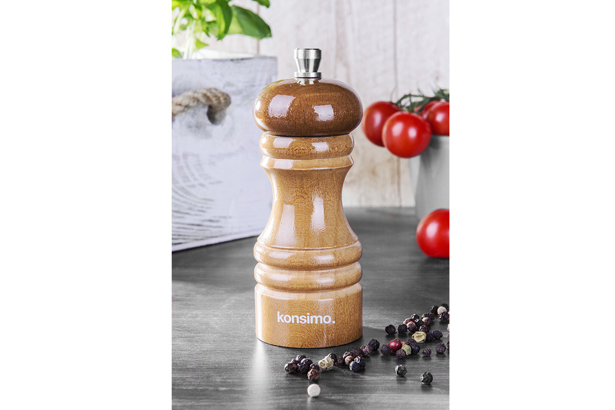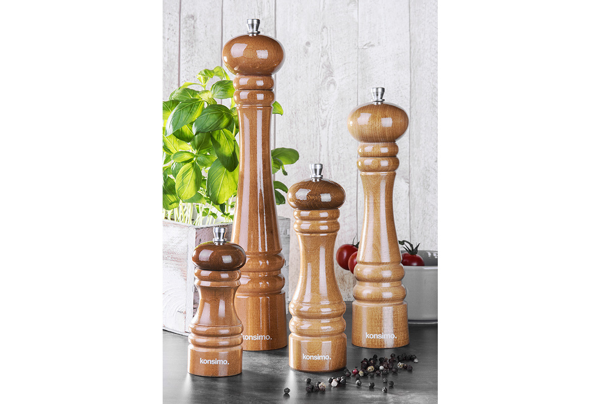 - Dodatočné informácie: Drevený mlynček je vzduchotesný, ale nie hermetický, pripustený vzduch zdôrazňuje kvality korenia, Neklaďte na mokrý povrch, Pozor! Mlynčeky na soľ by nemali byť ponechané na vlhkých povrchoch – soľ môže absorbovať vlhkosť, ktorá sa dostane dovnútra mlynčeka