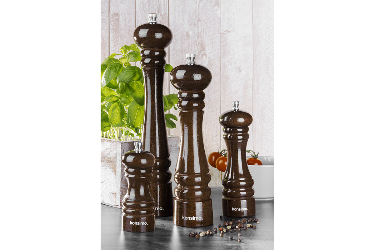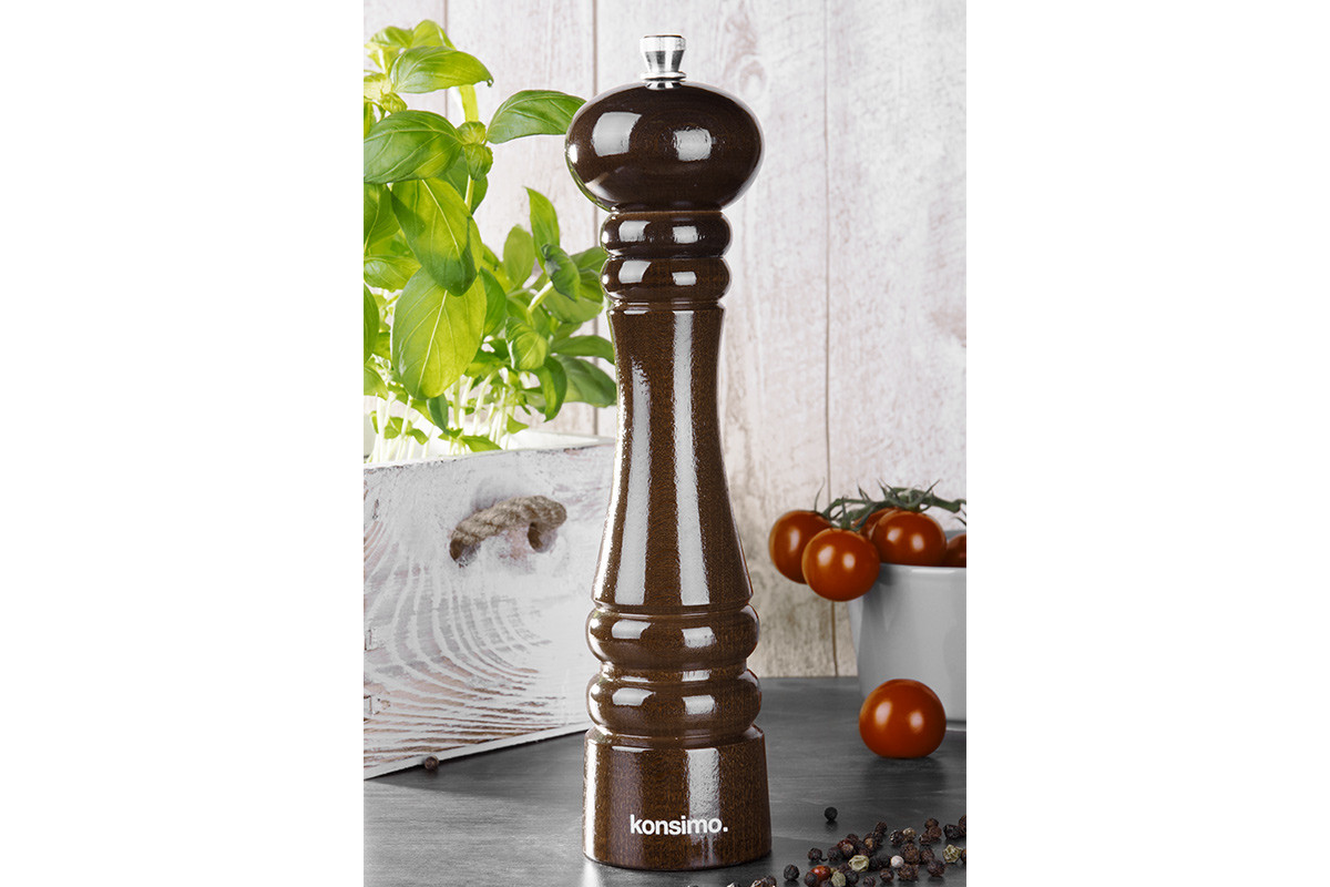 - Dodatočné informácie: Drevený mlynček je vzduchotesný, ale nie hermetický, pripustený vzduch zdôrazňuje kvality korenia, Neklaďte na mokrý povrch, Pozor! Mlynčeky na soľ by nemali byť ponechané na vlhkých povrchoch – soľ môže absorbovať vlhkosť, ktorá sa dostane dovnútra mlynčeka
