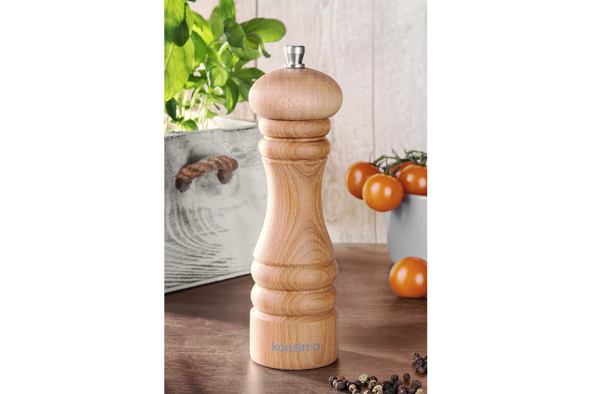 - Dodatočné informácie: Drevený mlynček je vzduchotesný, ale nie hermetický, pripustený vzduch zdôrazňuje kvality korenia, Neklaďte na mokrý povrch, Pozor! Mlynčeky na soľ by nemali byť ponechané na vlhkých povrchoch – soľ môže absorbovať vlhkosť, ktorá sa dostane dovnútra mlynčeka