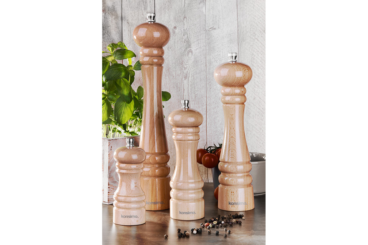 - Dodatočné informácie: Drevený mlynček je vzduchotesný, ale nie hermetický, pripustený vzduch zdôrazňuje kvality korenia, Neklaďte na mokrý povrch, Pozor! Mlynčeky na soľ by nemali byť ponechané na vlhkých povrchoch – soľ môže absorbovať vlhkosť, ktorá sa dostane dovnútra mlynčeka