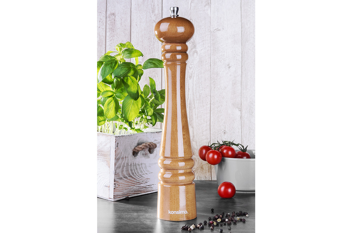 - Dodatočné informácie: Drevený mlynček je vzduchotesný, ale nie hermetický, pripustený vzduch zdôrazňuje kvality korenia, Neklaďte na mokrý povrch, Pozor! Mlynčeky na soľ by nemali byť ponechané na vlhkých povrchoch – soľ môže absorbovať vlhkosť, ktorá sa dostane dovnútra mlynčeka