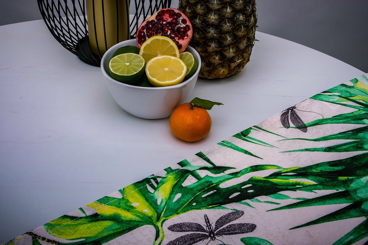 MONTERI Objav celú kolekciu Behúň na stôl- farba zelená/bílá