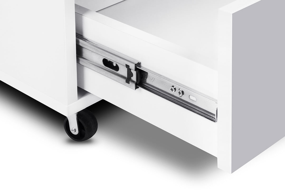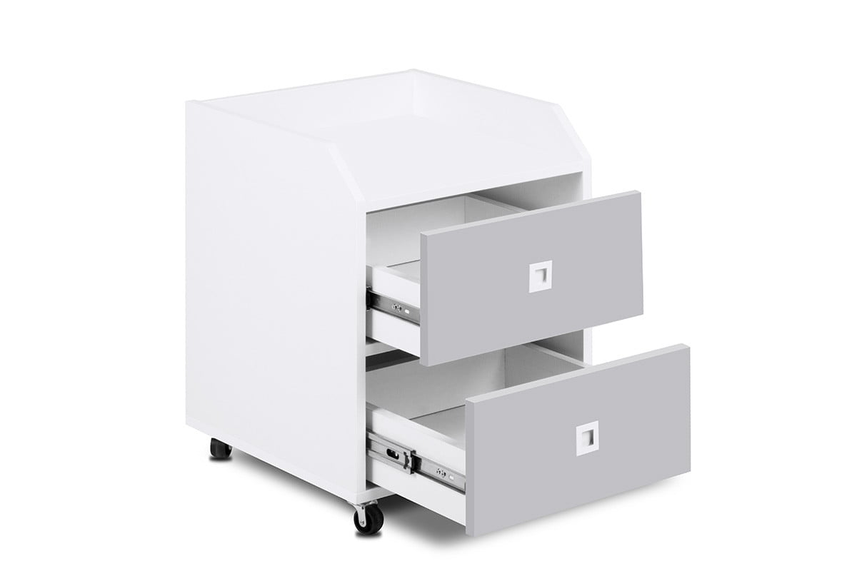 Stolový stojan z kolekcie MIRUM udrží vaše školské pomôcky, kancelárske doplnky a ďalšie predmety, ktoré sa oplatí mať poruke, usporiadané. Vďaka praktickým kolieskam ho možno ľahko premiestňovať podľa potreby. Tento nábytok je vhodný do detskej izby. Podstavec má priestrannú uzamykateľnú skrinku, ktorá uľahčuje udržiavanie poriadku pri štúdiu alebo práci. Prístup do vnútra skrinky je zabezpečený praktickou rukoväťou. Zásuvky majú tichý systém zatvárania pre väčšie pohodlie.