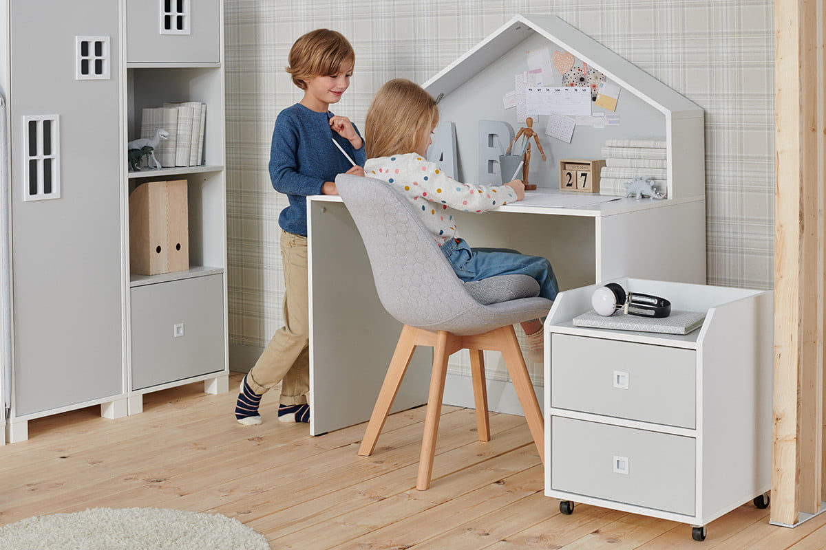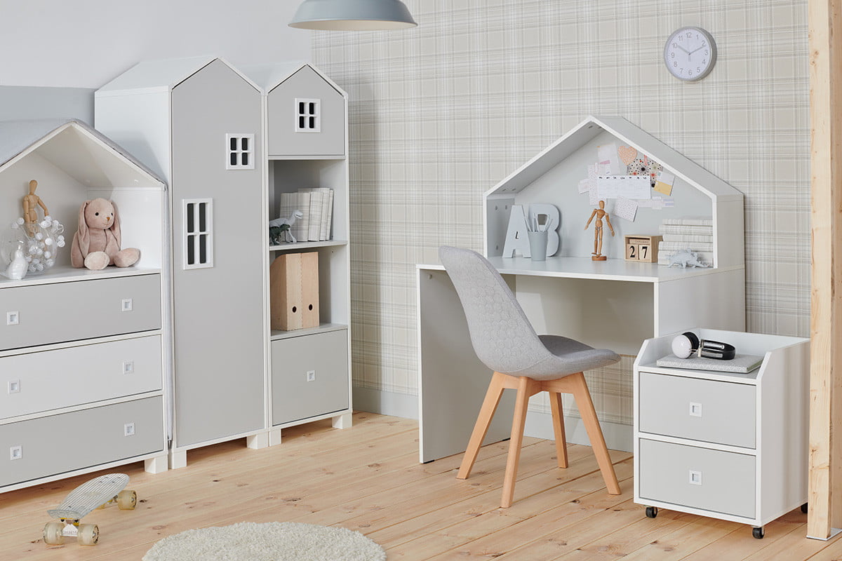 Detská skrinka na kolieskach v tvare domčeka MIRUM - farba bílá/šedá