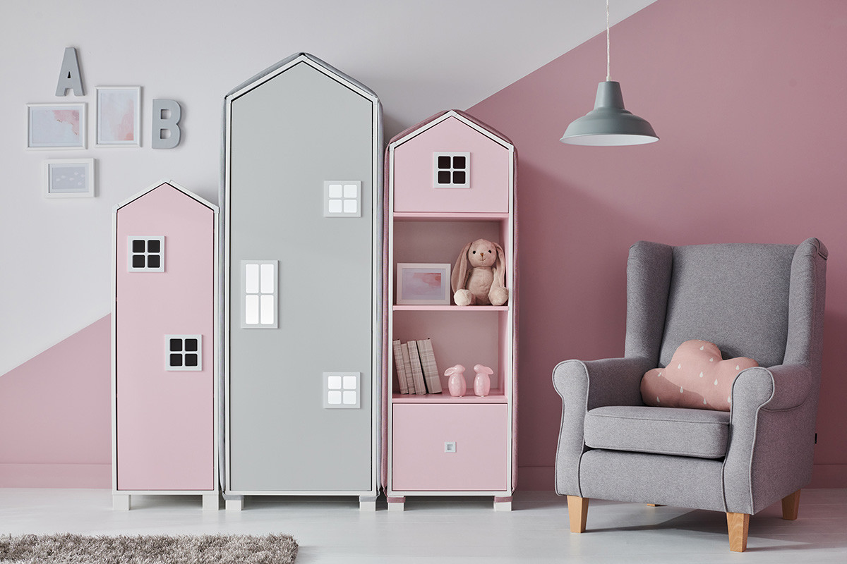 Šatníková skriňa s policami Baby House Grey sa otvára očarujúcim okienkom s úchytkou a vytvára osobitnú atmosféru. Priestor pre deti sa stane vizuálne príjemným a útulným - ideálnym miestom na hranie, odpočinok a učenie. Okná sú lemované mäkkým plastom a sú príjemné na dotyk a pohodlné. Vo vnútri si môžete postaviť jedinečný domček pre bábiky!