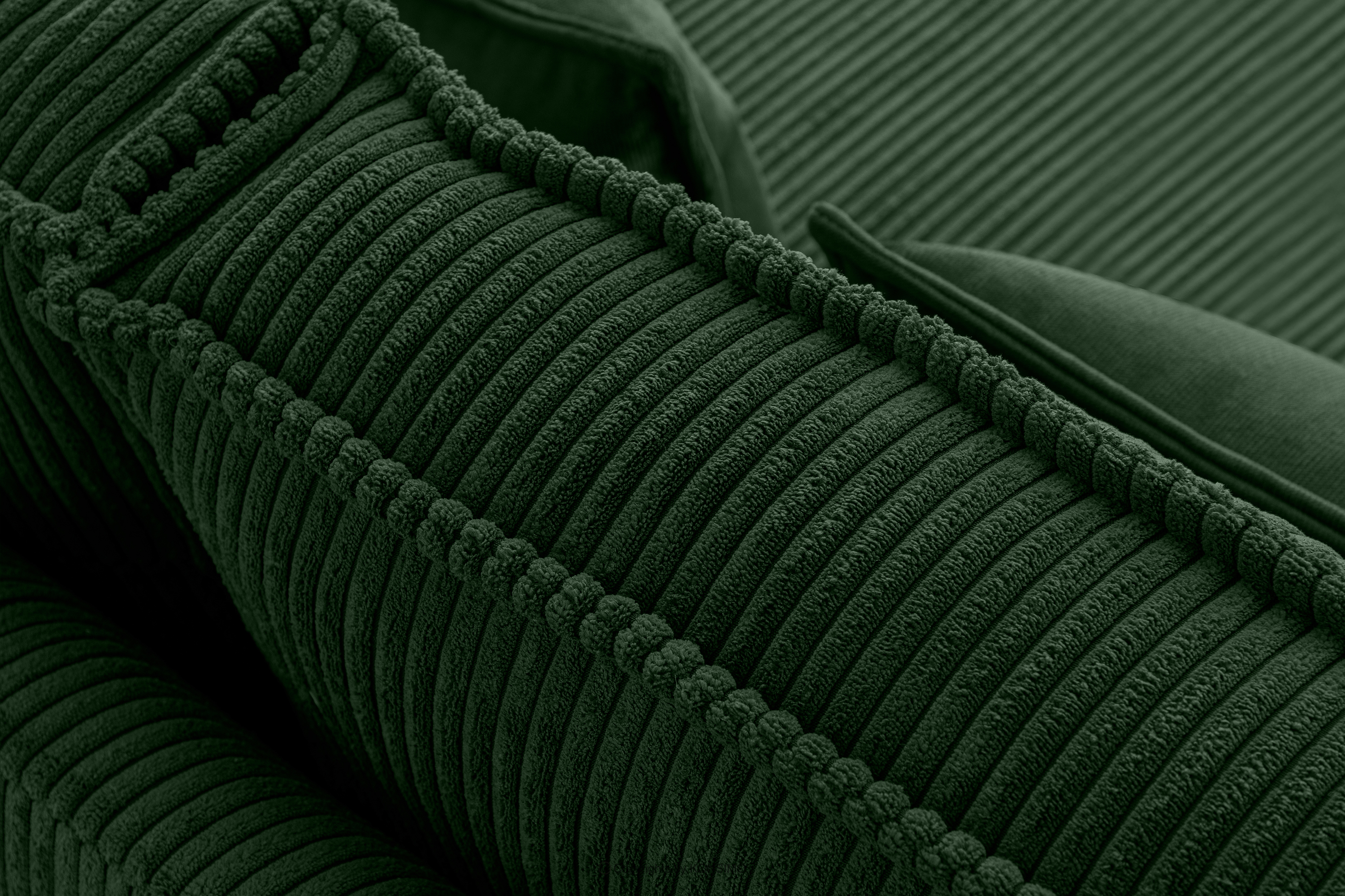 GANZO Objav celú kolekciu 3-miestna pohovka z manšestrovej tkaniny s vankúšmi z tmavozeleného velúru- farba tmavozelená