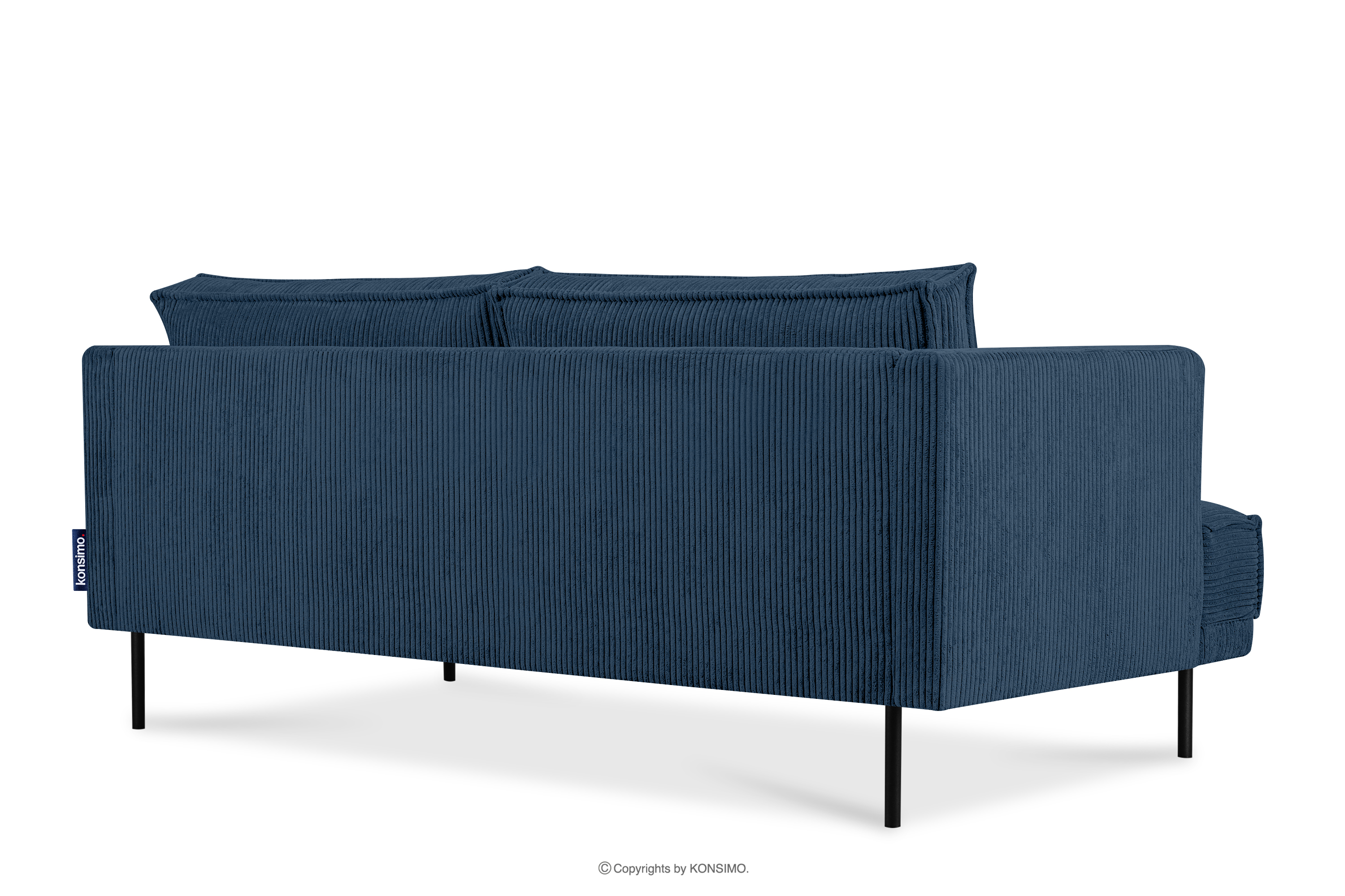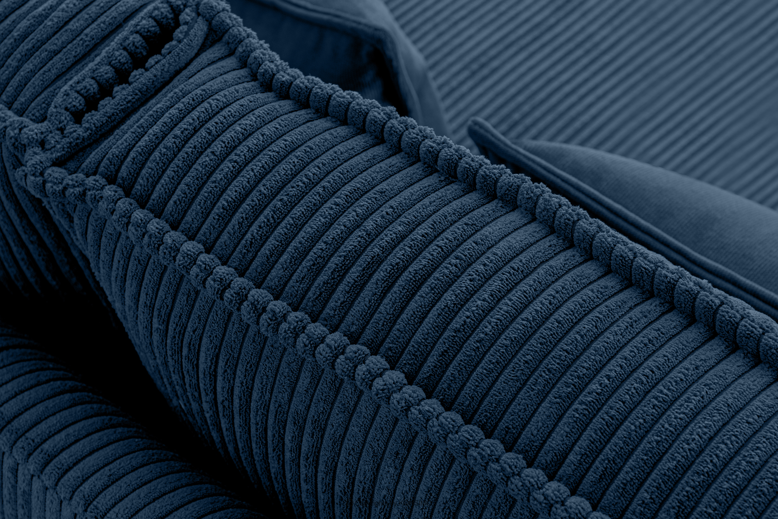 GANZO Objav celú kolekciu 3-miestna pohovka z manšestrovej tkaniny s vankúšmi z tmavomodrého velúru- farba námornícka modrá