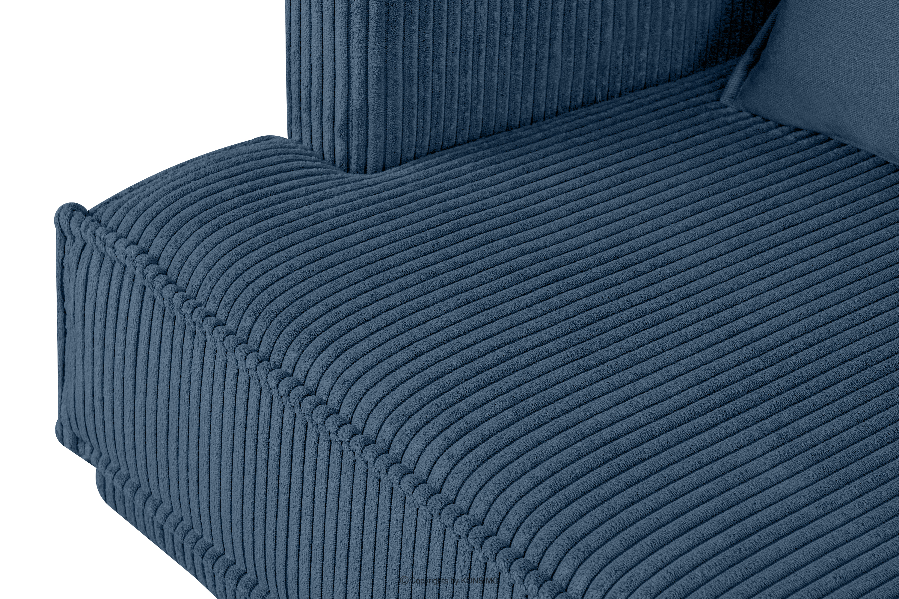 GANZO 3-miestna pohovka z manšestrovej tkaniny s vankúšmi z tmavomodrého velúru