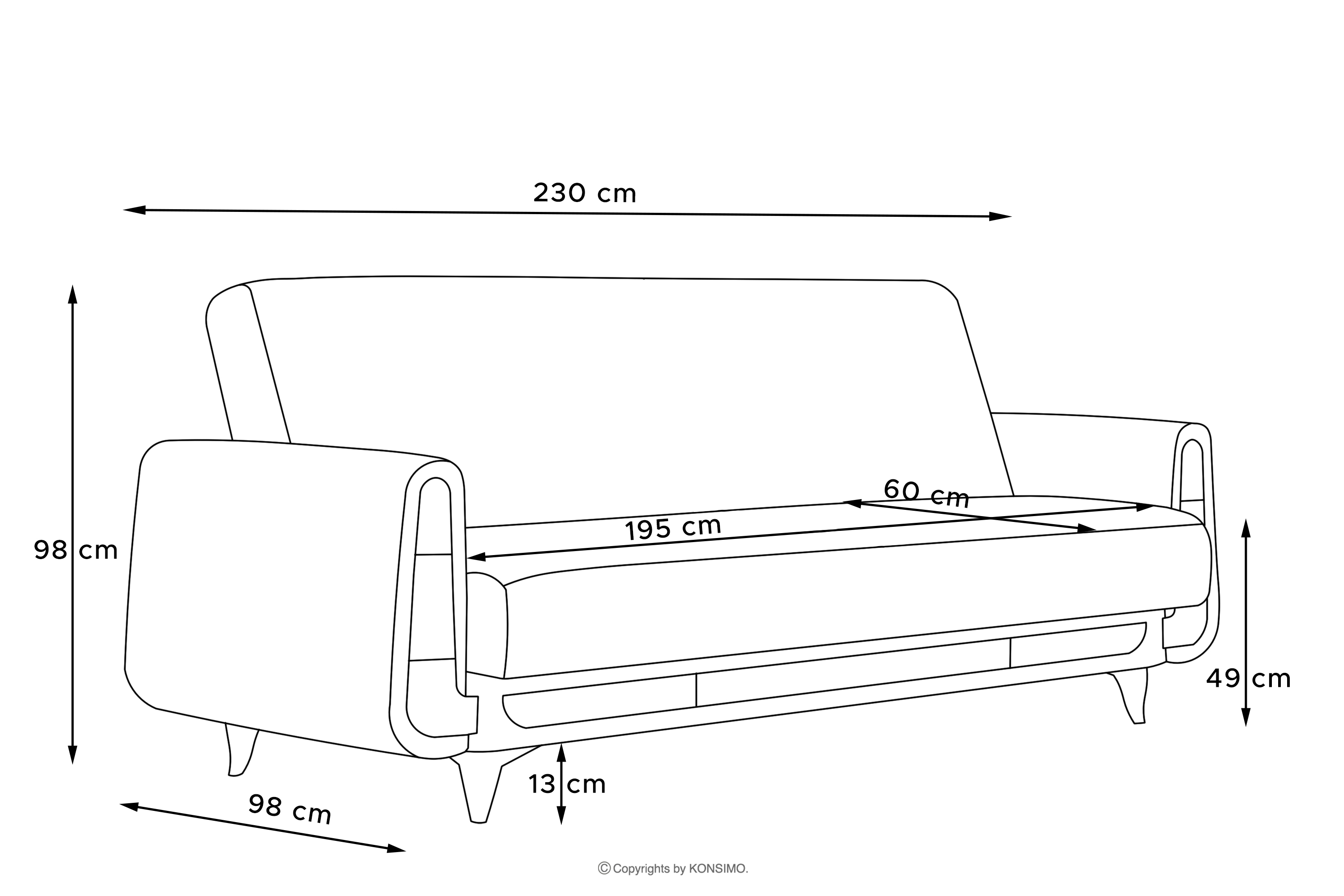 - Rozmery sedadla (cm): 195x49x60