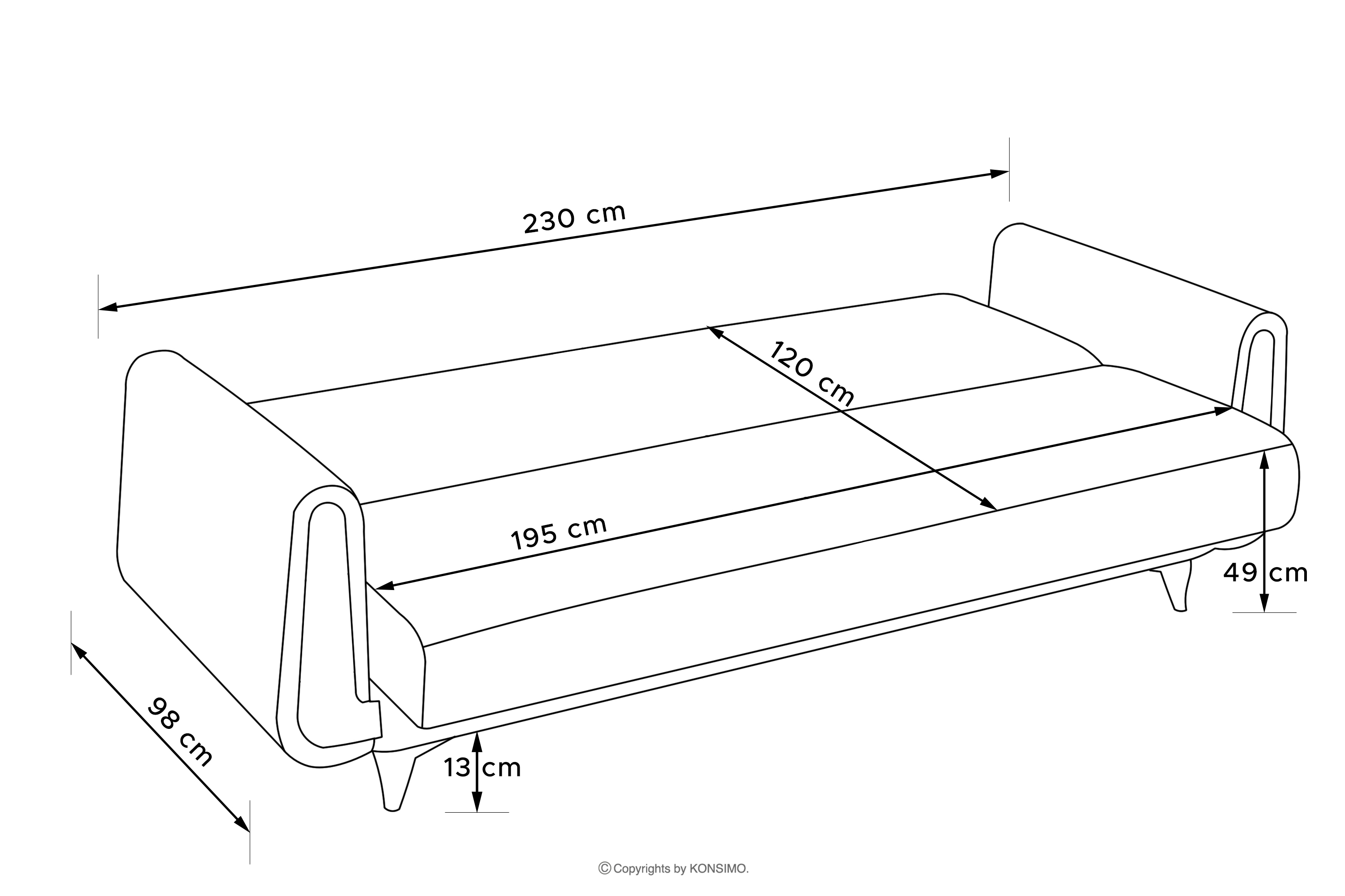 - 230x98x98 cm