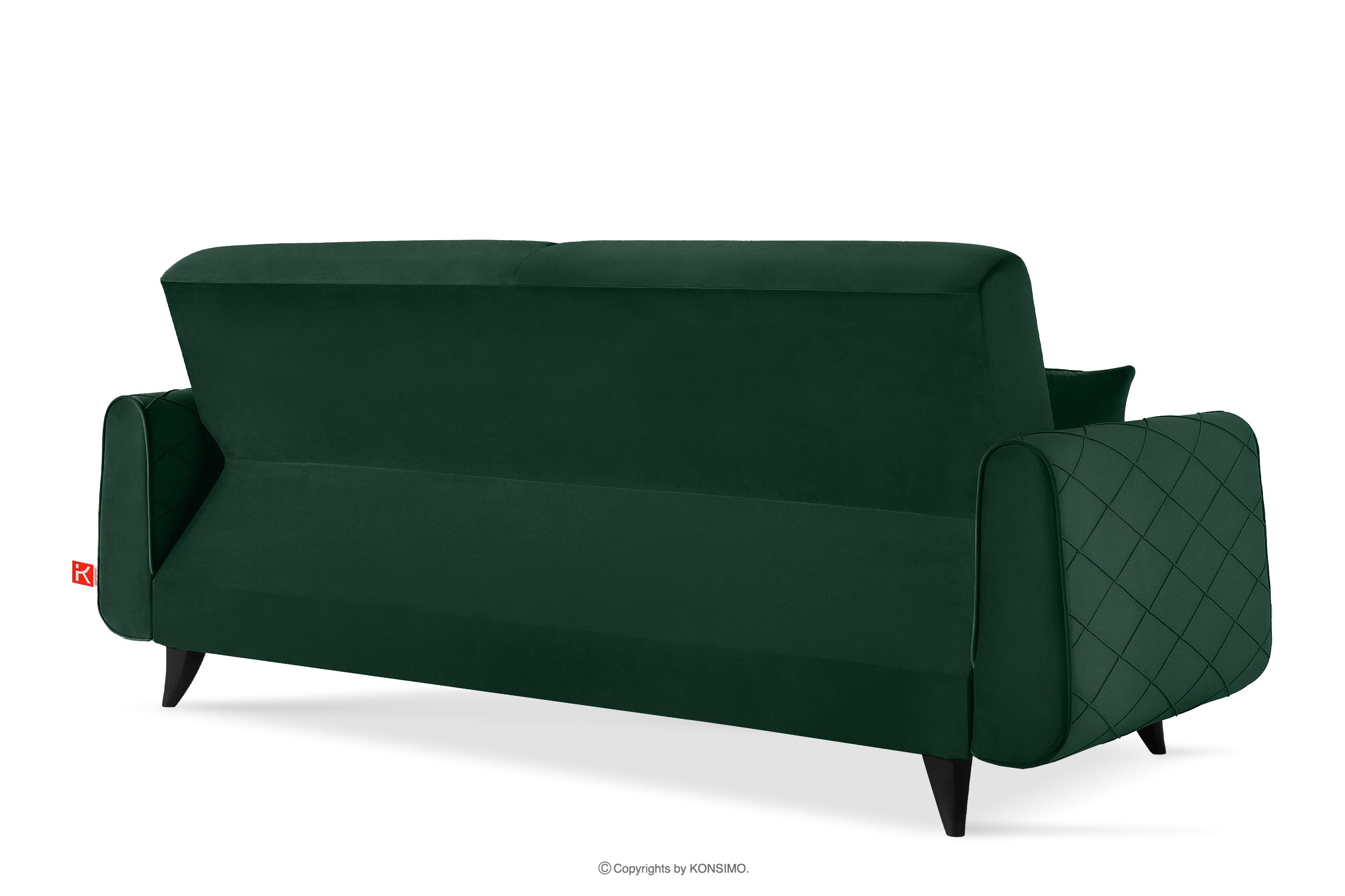 Elegantná tmavozelená velúrová pohovka je kus nábytku vo vintage štýle. Bola vyrobená tak, aby spĺňala tie najvyššie očakávania. Svoje dokonalé miesto si nájde aj v elegantných a loftových izbách. Látka použitá na čalúnenie pohovky je veľmi príjemná na dotyk a ľahko sa čistí. Veľkou výhodou je aj funkcia spania a nádoba na uloženie posteľnej bielizne, ktorá rozhodne uľahčuje udržiavanie poriadku.