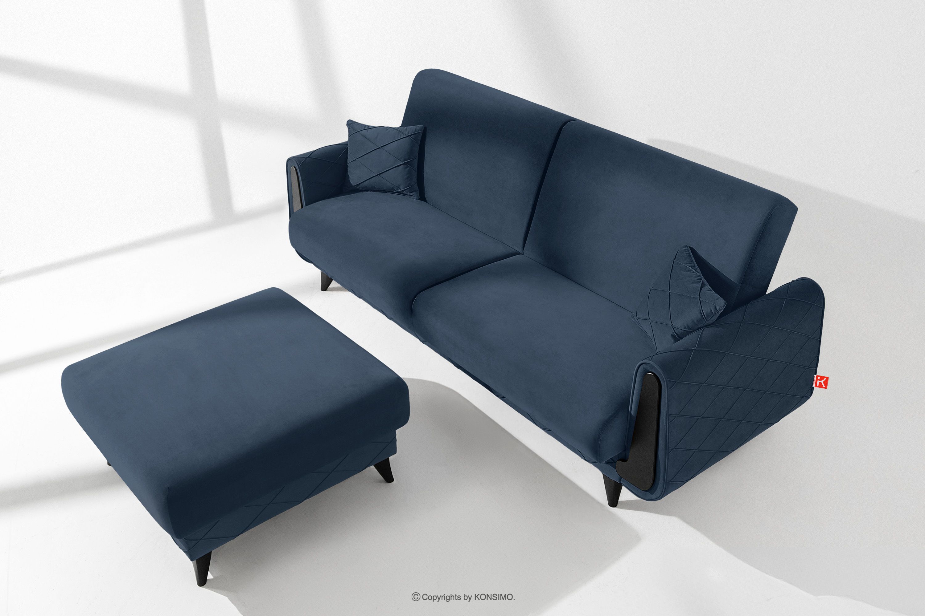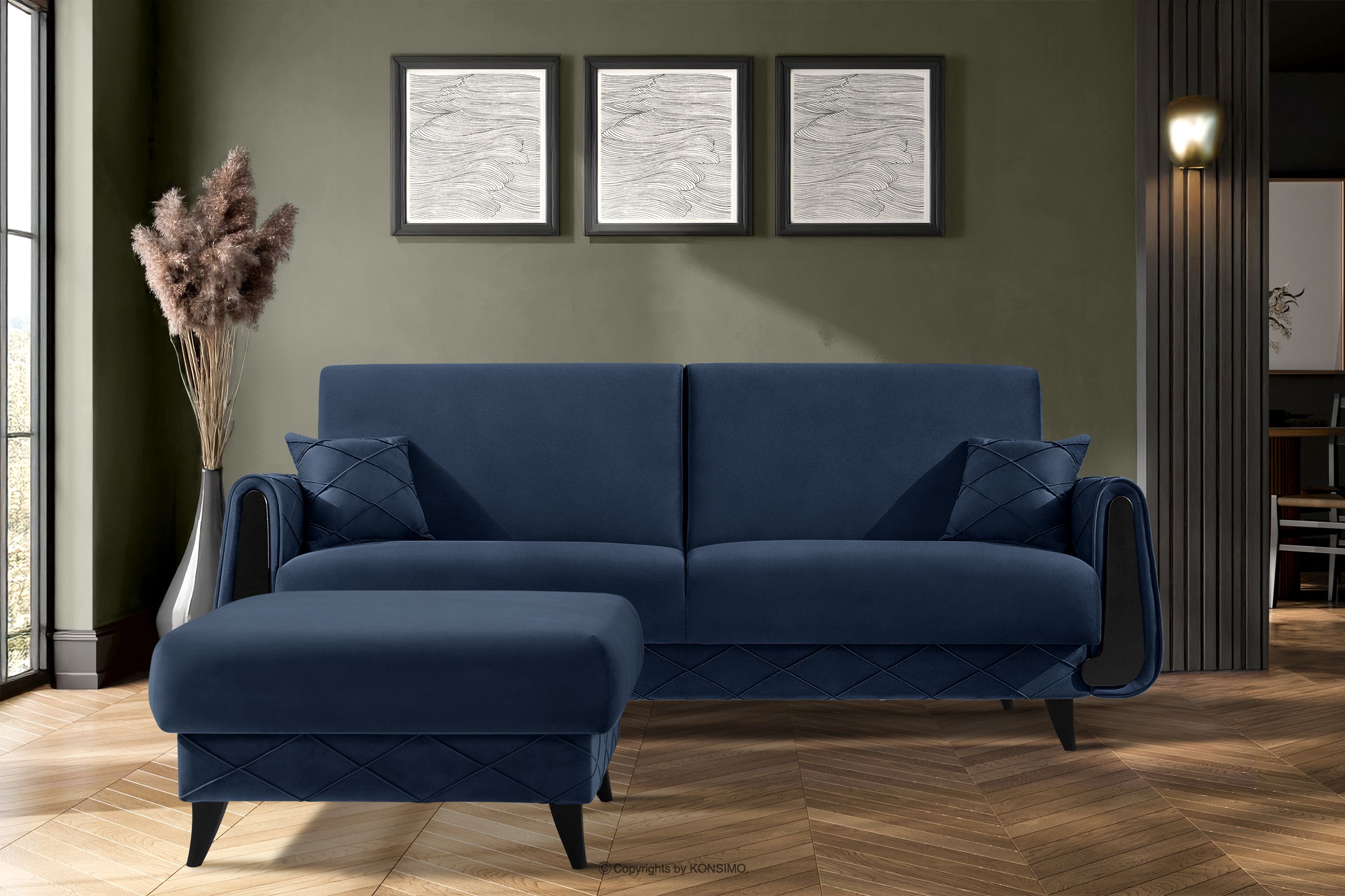 GUSTAVO III Trojmiestna rozkladacia pohovka z látky velúr rozkladacia tmavomodrá