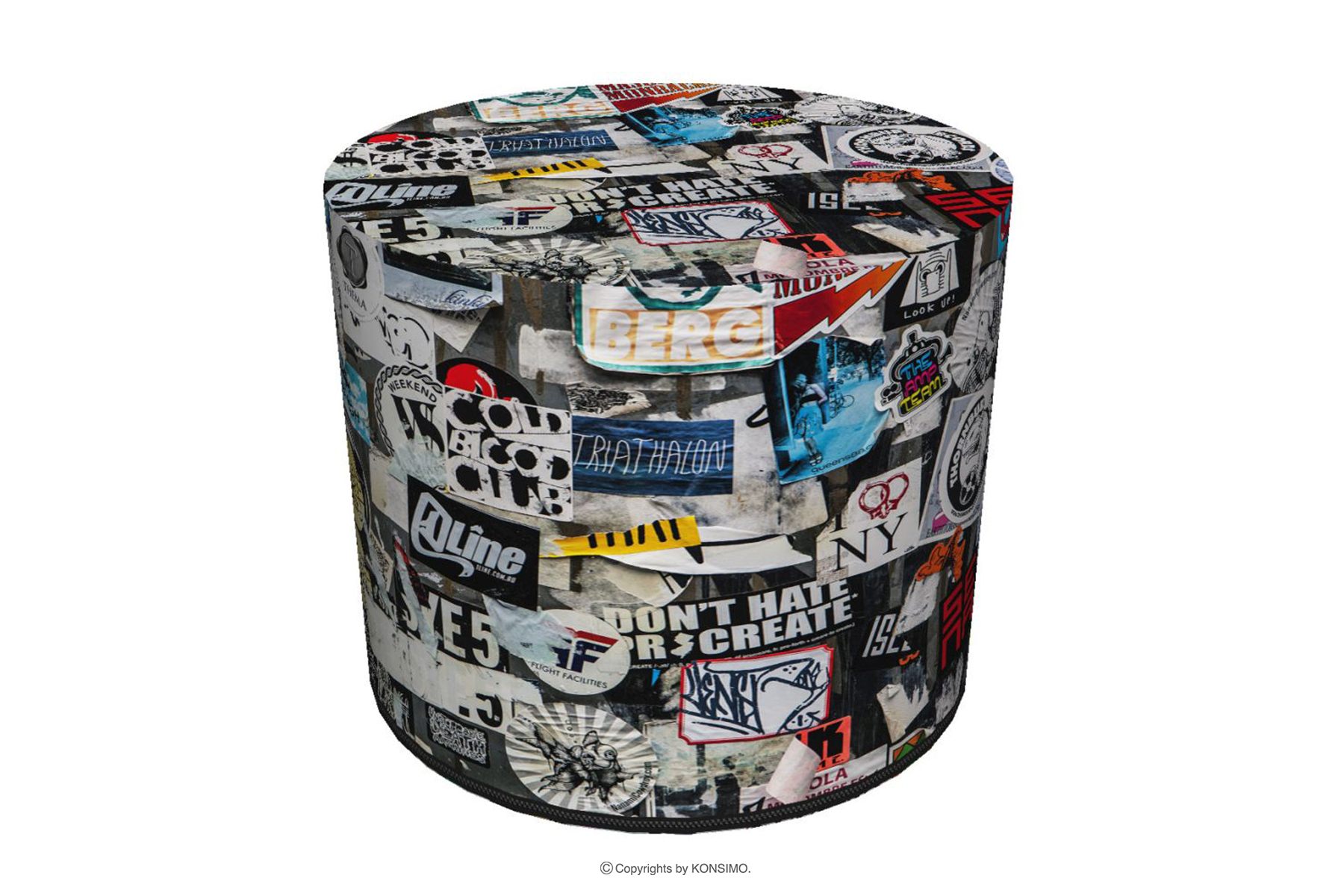 RASIL Objav celú kolekciu Okrúhly puf s nápismi vodeodolný- farba vícebarevný
