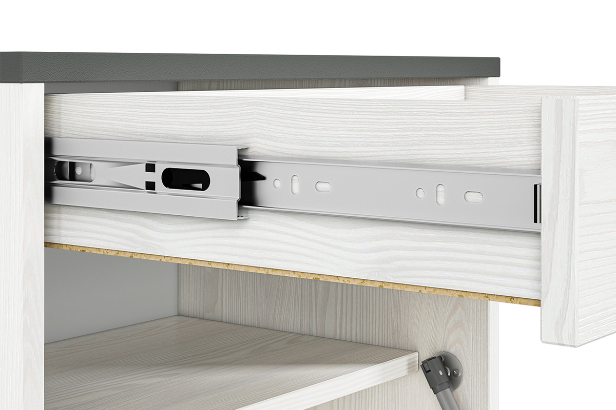 Nábytok v tejto kolekcii bol vyrobený z vysoko kvalitných materiálov. Laminovaná doska poskytuje pevnosť a pevnosť. Tvary sú nielen štýlové, ale aj veľmi praktické. Celá kolekcia je k dispozícii v našom internetovom obchode za atraktívne ceny!