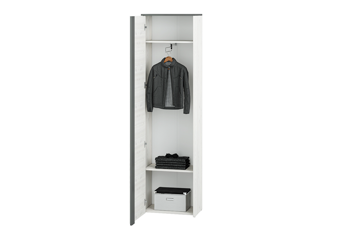 produktu Úzka šatníková skriňa do predsiene s tyčou biela / šedá