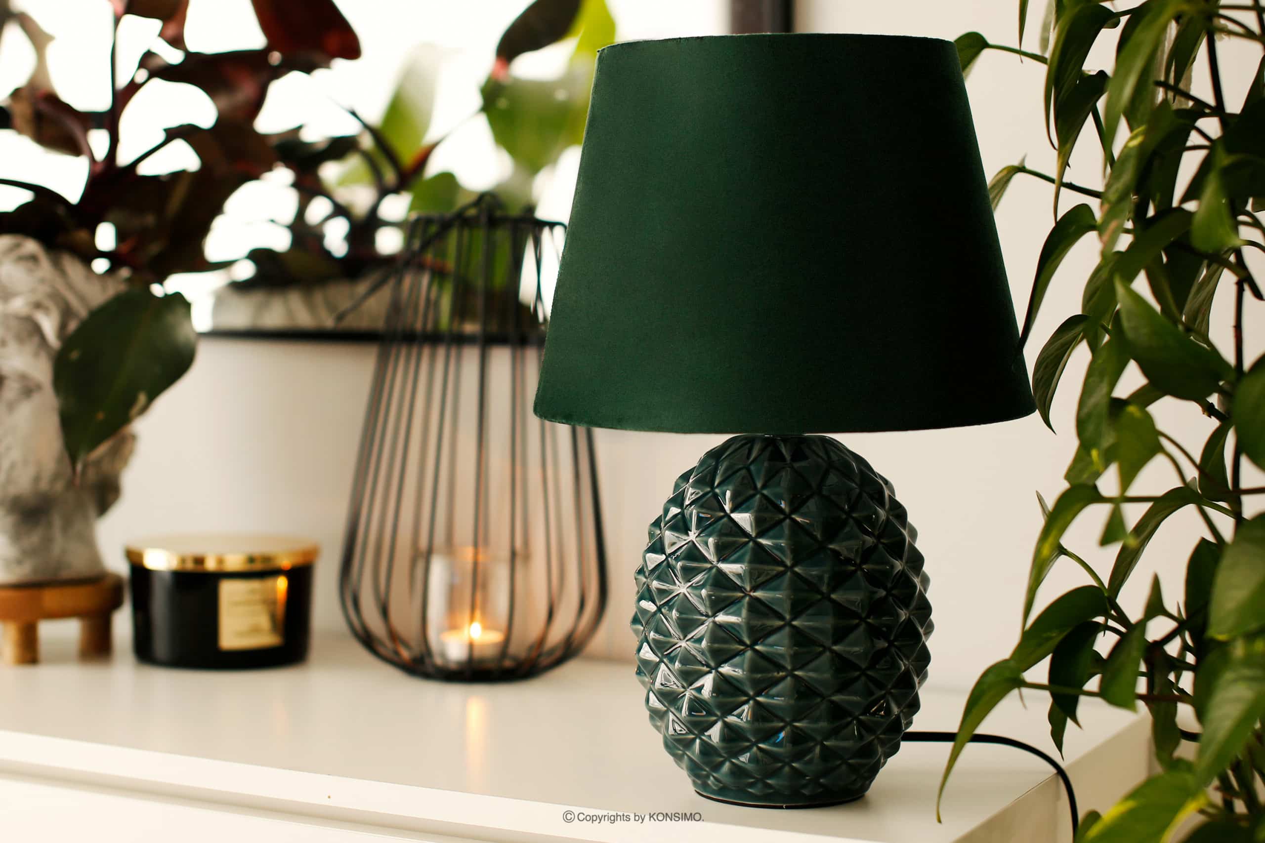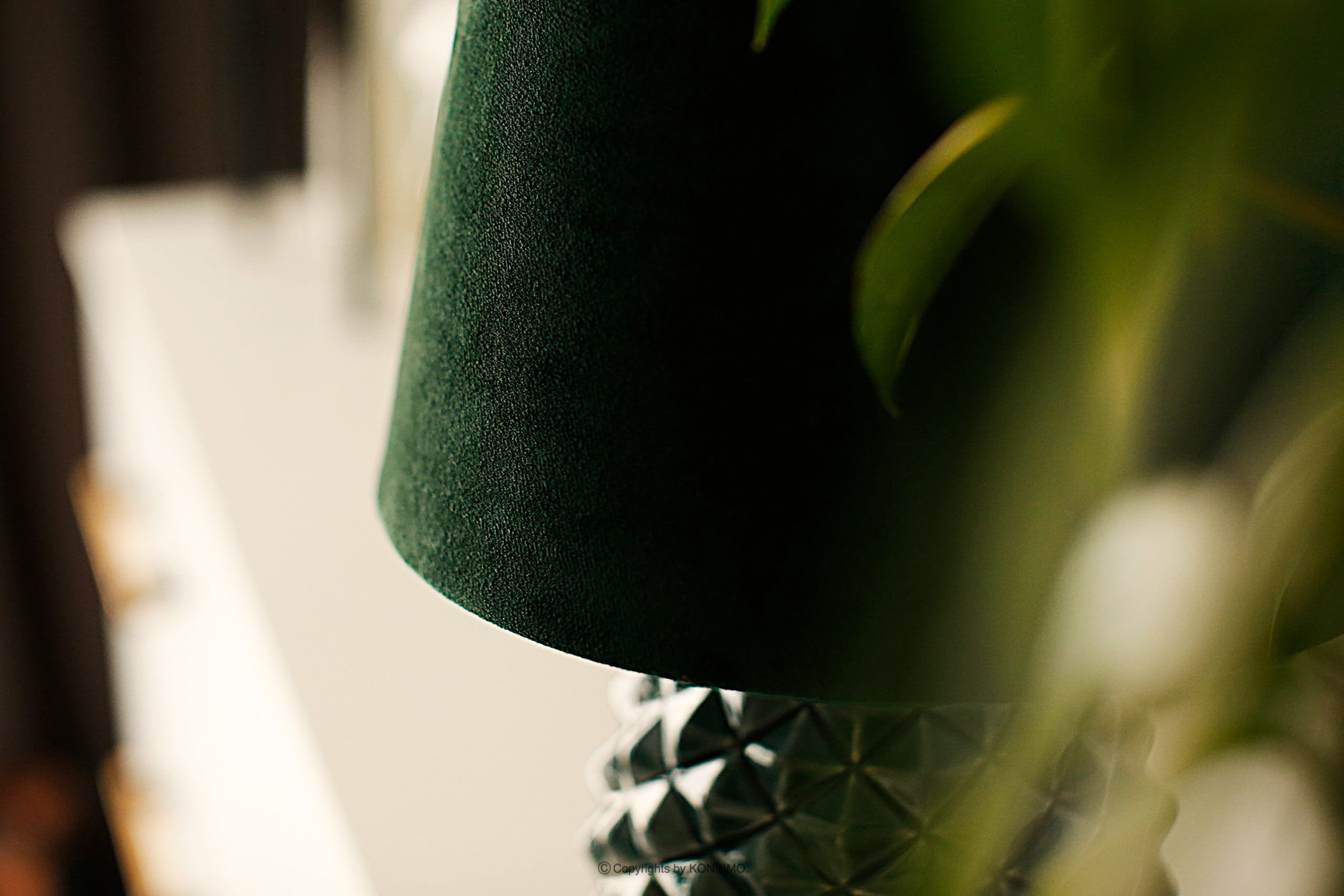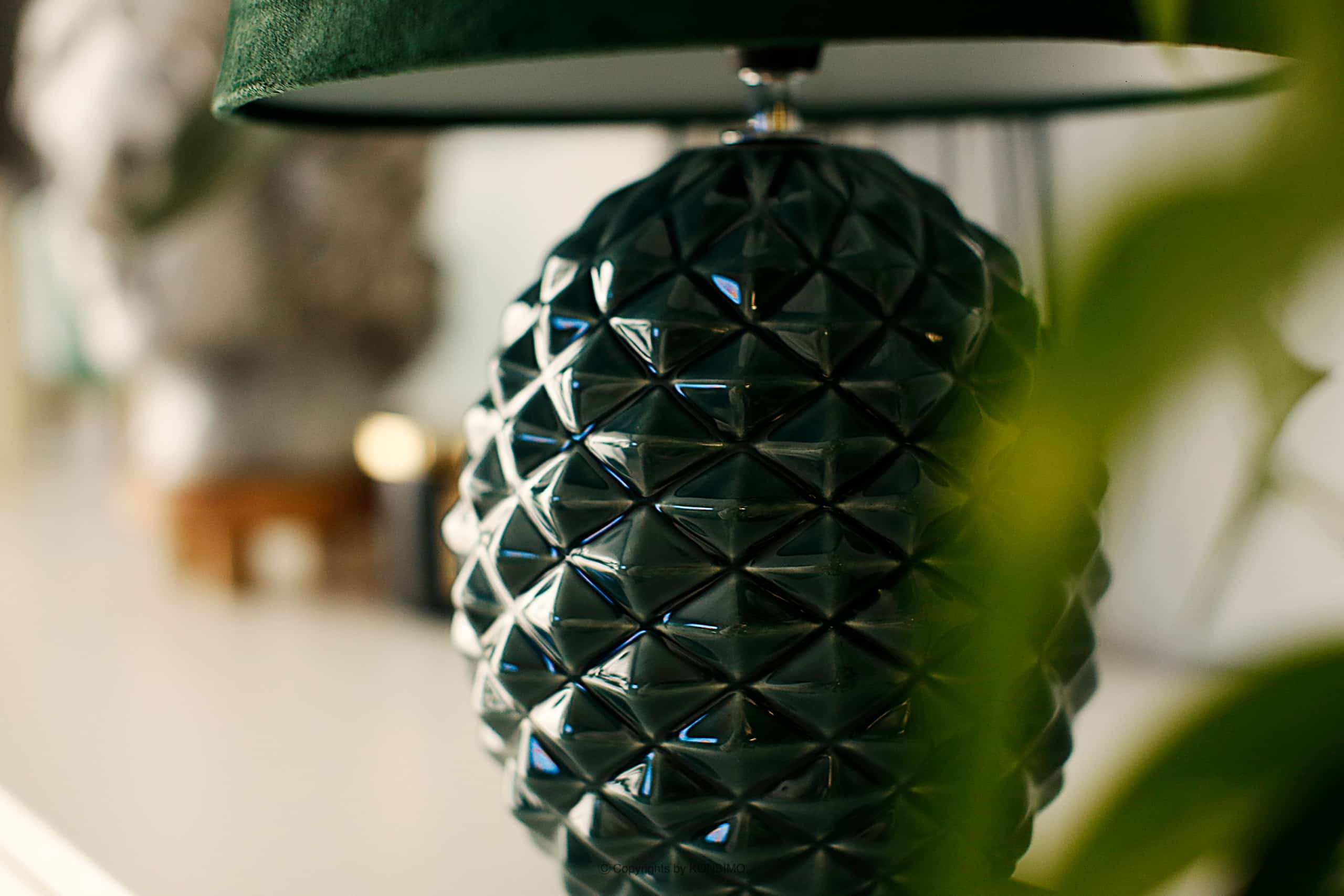 Zelená stolná lampa je elegantným a štýlovým doplnkom vášho interiéru. Stolová lampa FRUCTU má dekoratívnu základňu z keramiky. Je veľmi elegantný a krásne dozdobí priestor v obývacej izbe, spálni alebo predsieni. Farba fľaškovo zelená sa bude hodiť do mnohých interiérov, napríklad v modernom, loftovom a elegantnom štýle.