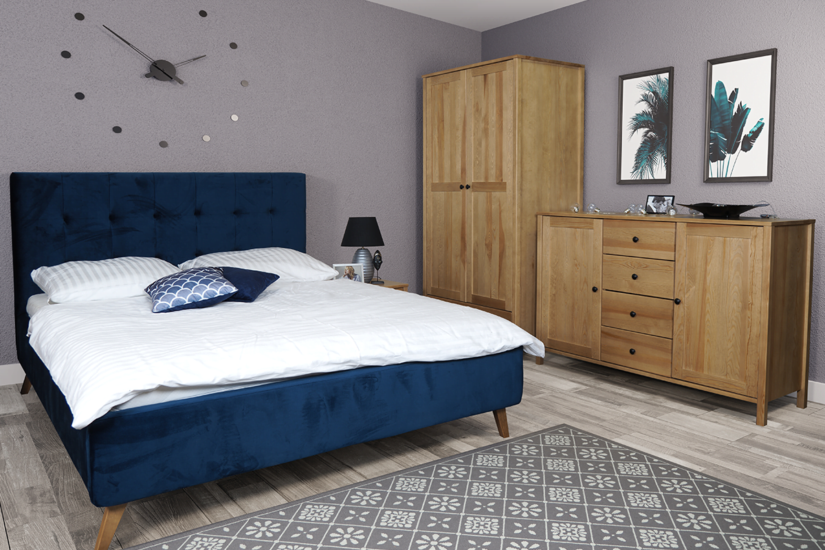 Jeho zásuvky sú vybavené systémom tichého zatvárania, ktorý zaisťuje bezhlučné otváranie a zatváranie. Komoda je dostupná v dvoch farebných variantoch: v prírodnej farbe dreva a bielej, lakovaná moridlom.
