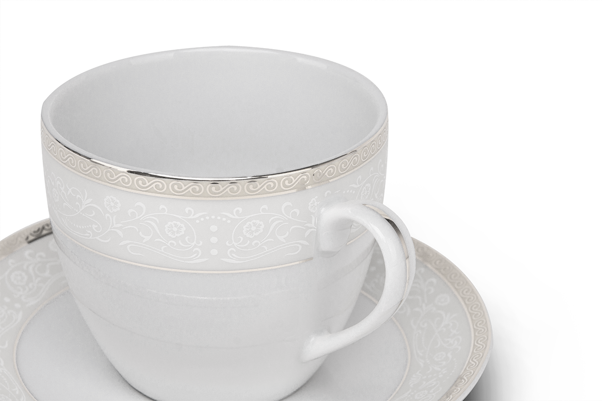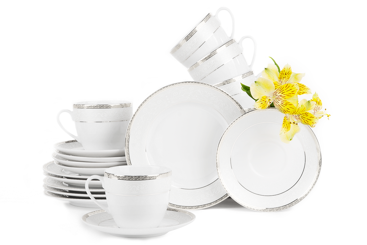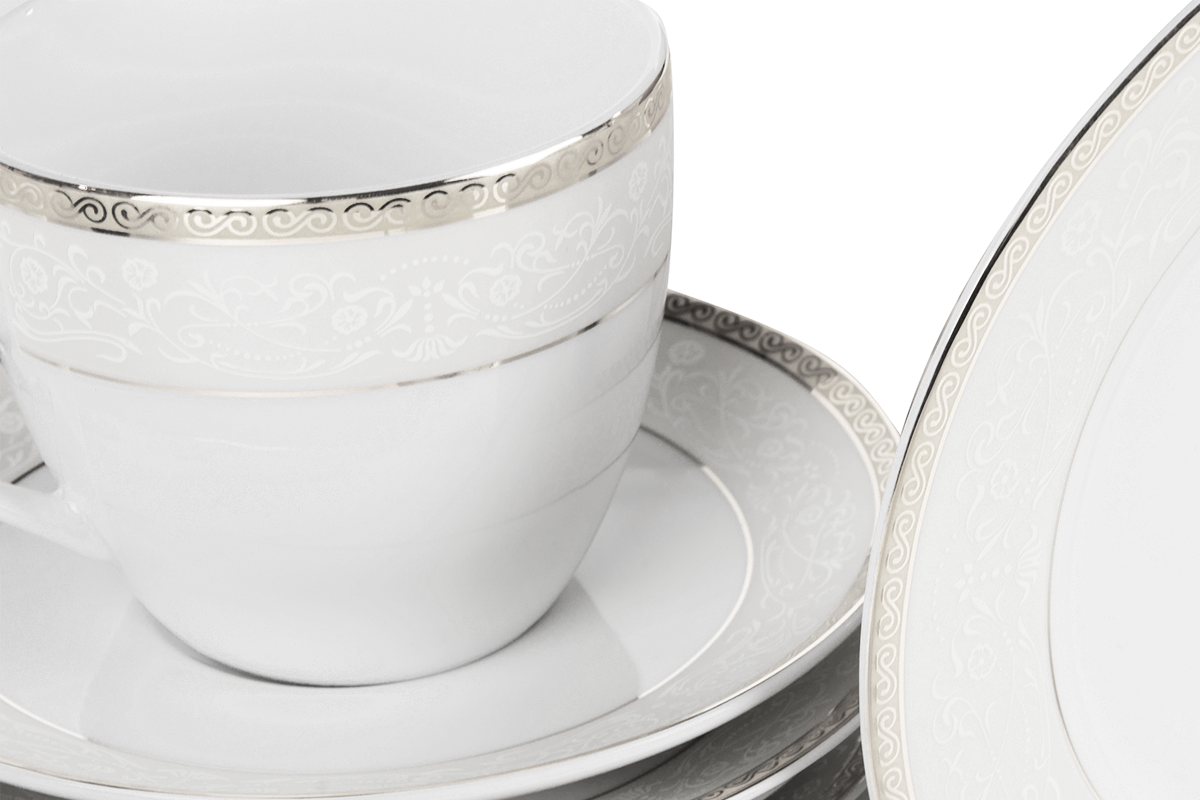 AGAWA PLATIN Jedálenská súprava poľský porcelán pre 6 osôb, 12 dielov biely / platinový vzor