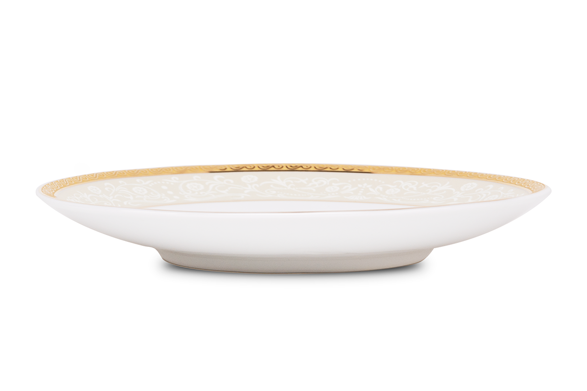 Štýlová kolekcia riadu Agawa sa vyznačuje elegantne vyrobenými dekoráciami a klasickými tvarmi, ale vyzerá skvele aj v moderných interiéroch. Prírodné vzory potešia jemnou kombináciou platiny alebo zlata a lesklých, vypuklých prvkov na bielom povrchu. Kolekcia je vyrobená z kvalitného porcelánu, vďaka ktorému bude ozdobou vášho stola po mnoho rokov. Riad nepoužívajte v mikrovlnnej rúre.