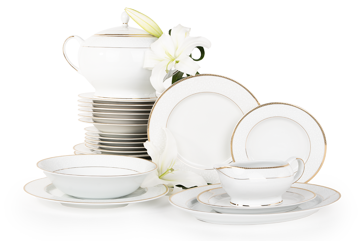 produktu Jedálenská súprava poľský porcelán pre 6 osôb 24 dielov biely / zlatý vzor